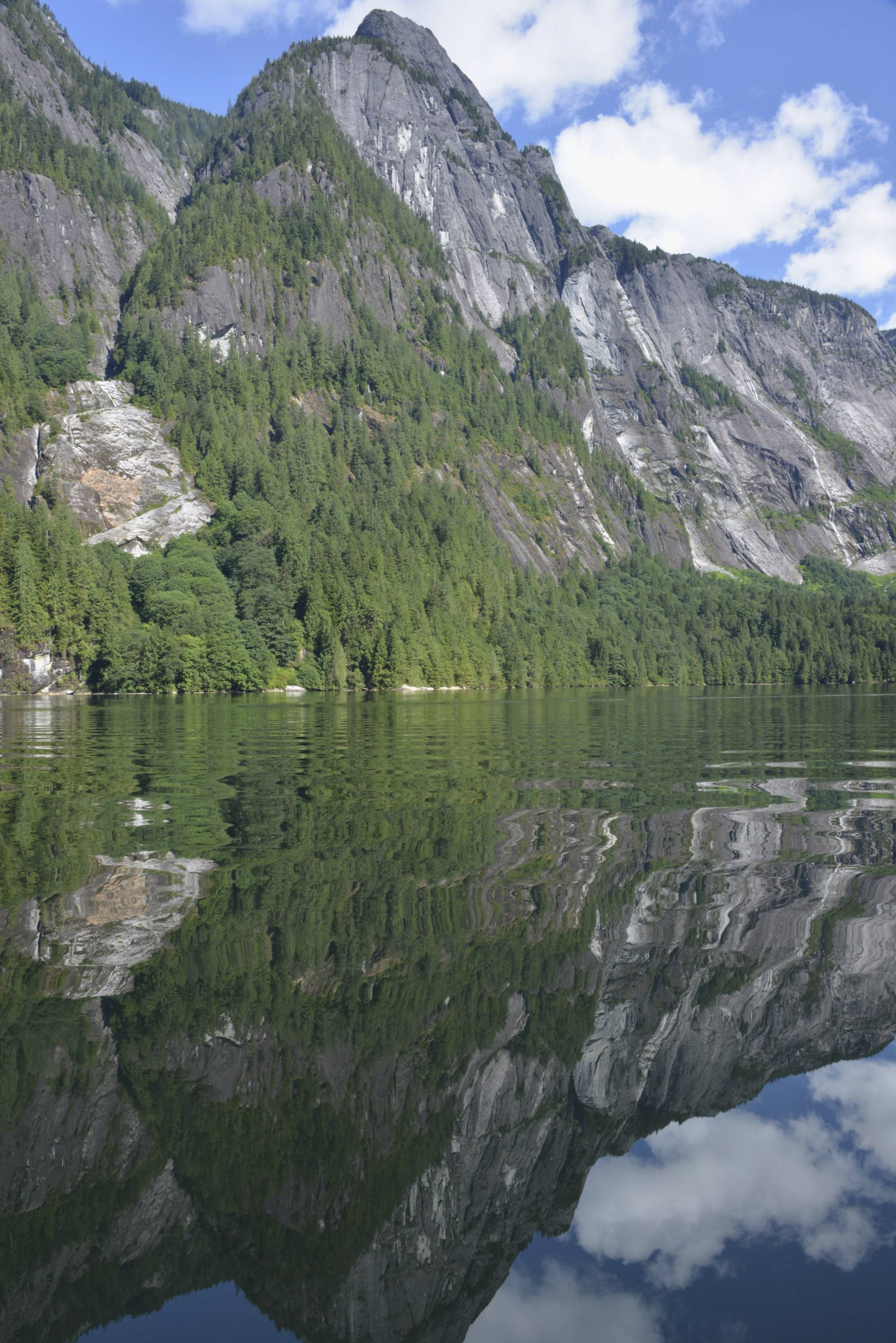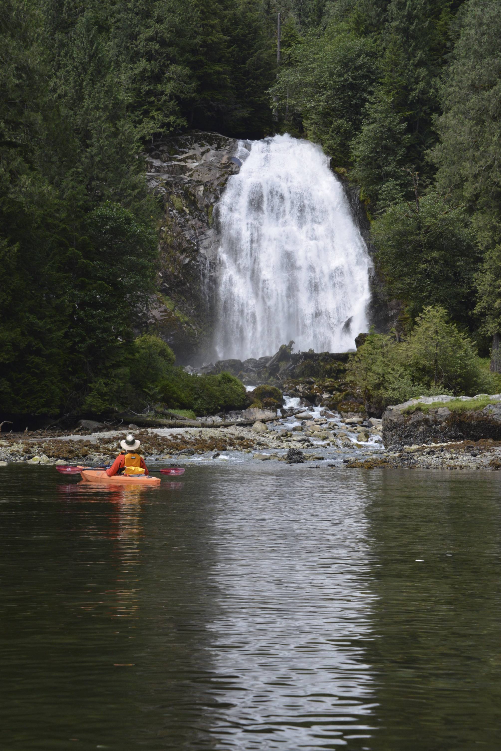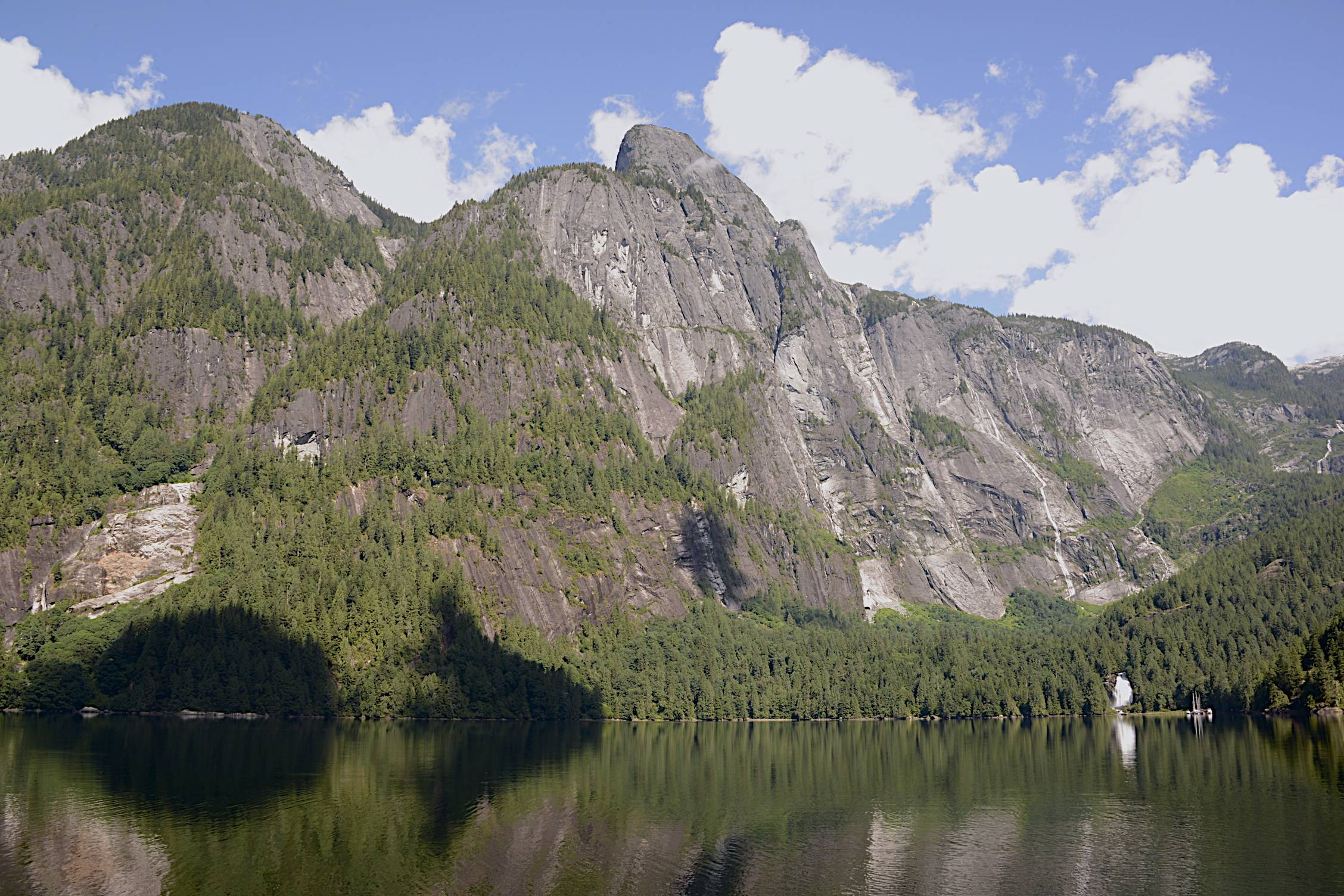 The soft pink in the setting sky is reflecting on the water as we end our day. Tomorrow we head to Dent Island, an oasis of luxury in the wilderness near Big Bay. It’s a short trip there. We just need to leave around 9:00 AM to get through the series of rapids at slack tide, beginning with Hole-In-The-Wall.