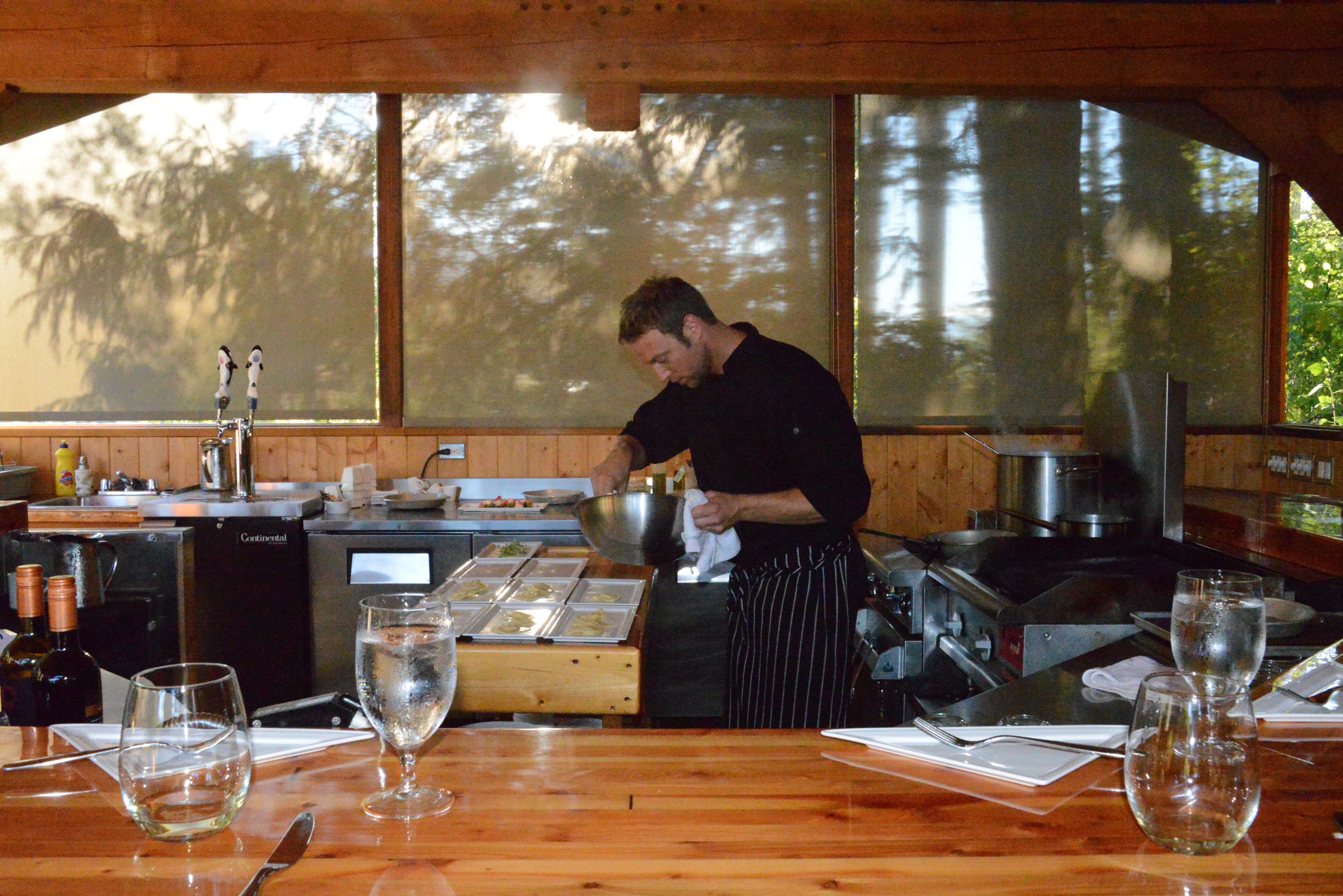 Dinner prepared by Chef Pascal and his assistant Misty was scrumptious: scallop seviche and chilled watermelon soup; dungeness crab ravioli with chives and scallions; duck comfit and wild mushroom risotto with truffle oil (the winner of the night!); grilled halibut tacos; steak asparagus and chive mashed potatoes (really not necessary, but yummy); and a dessert of grilled pineapple, sorbet and cashew crumble (the grilled pineapple was a fantastic idea). Obviously we rolled ourselves out of there very, very full.