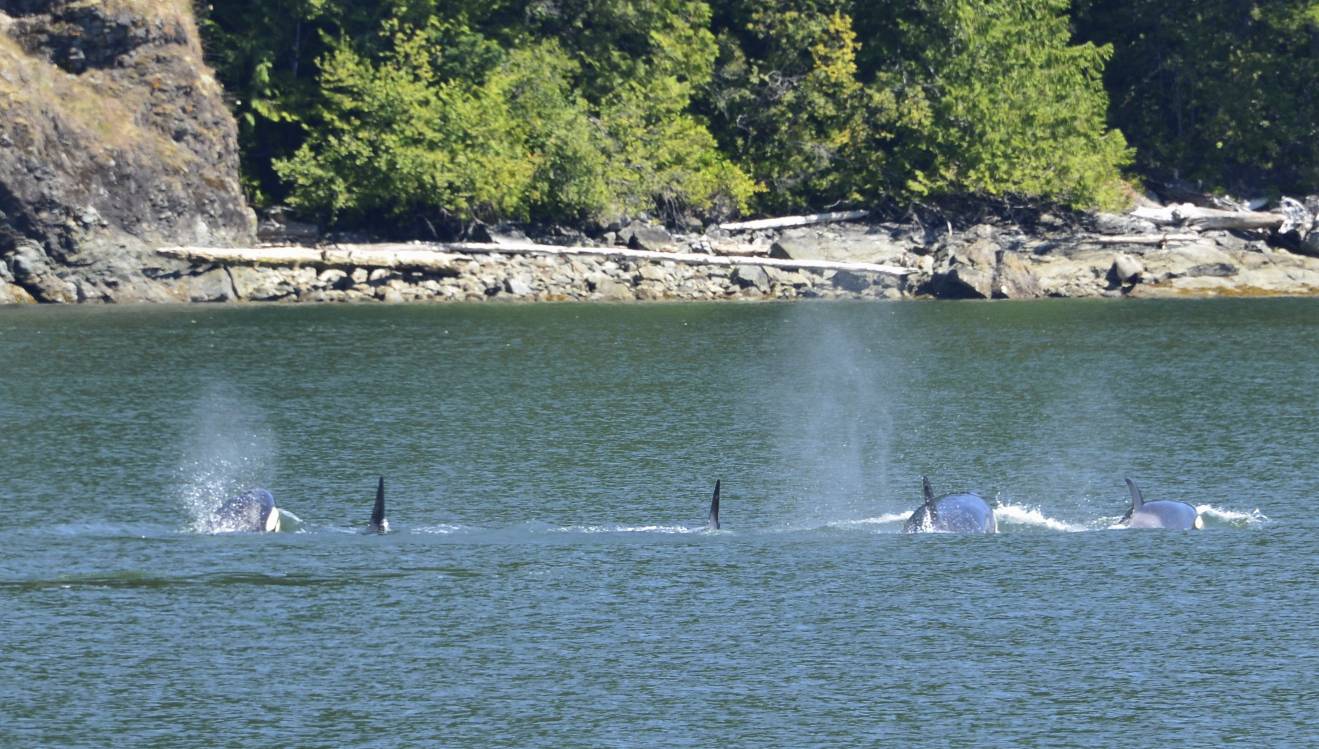 Our goal was to get to Pendrell Sound where the water is the warmest in Desolation Sound (mid-70’s) for some swimming. We didn’t know we would be entertained by Orcas for almost half the trip. And we had the Orcas all to ourselves – the tour boats never appeared.