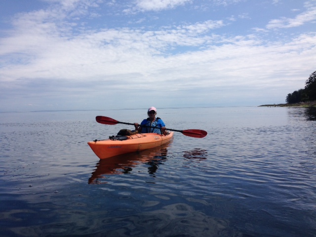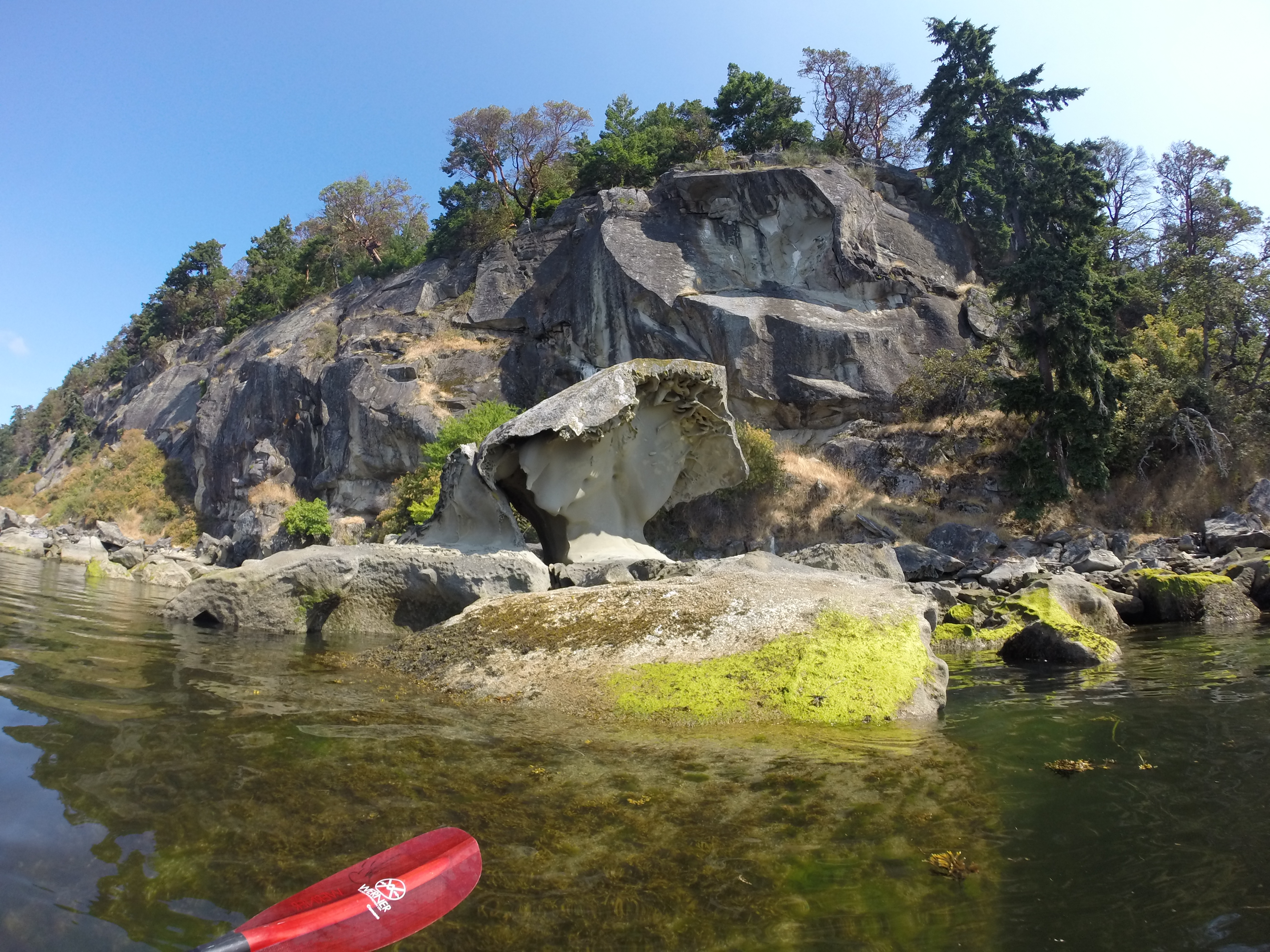 Jim found a fun passage that was just deep enough for kayaks through the shoal the creates “shoal harbor” at low tide and we kayaked back on the unusually glassy calm water of the Georgia Strait, passing baby seals soaking up the sun on shore and playing in the water.