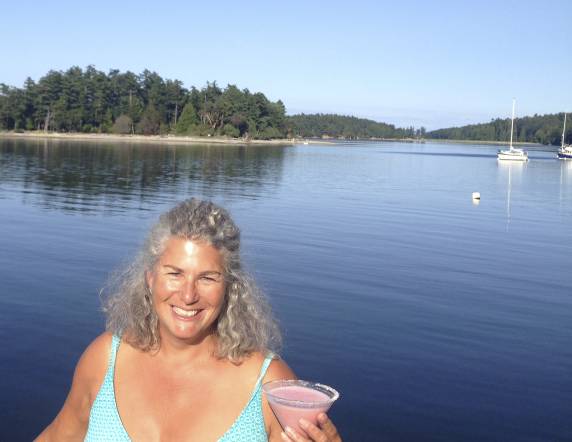 We ate lunch on the new upper deck area and watched quite a few boats anchor around us. But no bother, we were about to pick up and head to our last destination in Canada where we now sit peacefully watching the sunset, sharing a yummy, decadent, fresh-strawberry-and-cream cocktail.