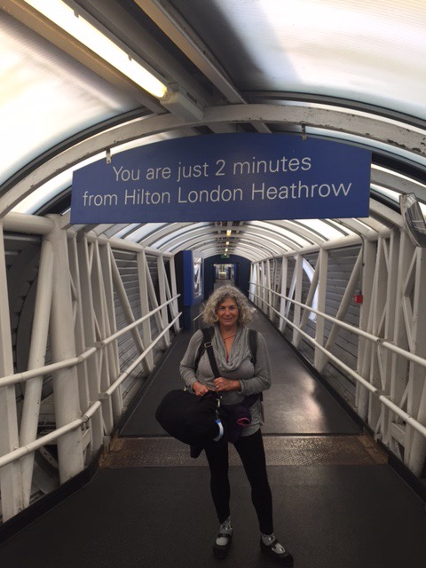After asking for some directions to terminal 4 and our day room at the Hilton there, the Heathrow information helpers in their purple jackets directed us to a waiting line for a bus. The 15 minute bus ride took us through the usually hidden side of the airport with all the airport equipment and trucks. It was quite odd. As we learned later when we went through customs in Terminal 4, it was also a breach of security. But, no problem, just don’t do it again. This of course left us a bit concerned regarding the so called “security.” But c’est la vie.