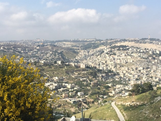 This is also where you can see the big wall separating the West Bank from Jerusalem and Israel. You can also see the large UN facility (on a very nice piece of view property) where the UN still monitors the 1948 War’s cease-fire line (the “green line” that used to divide Jerusalem Into its Israeli & Jordanian halves).