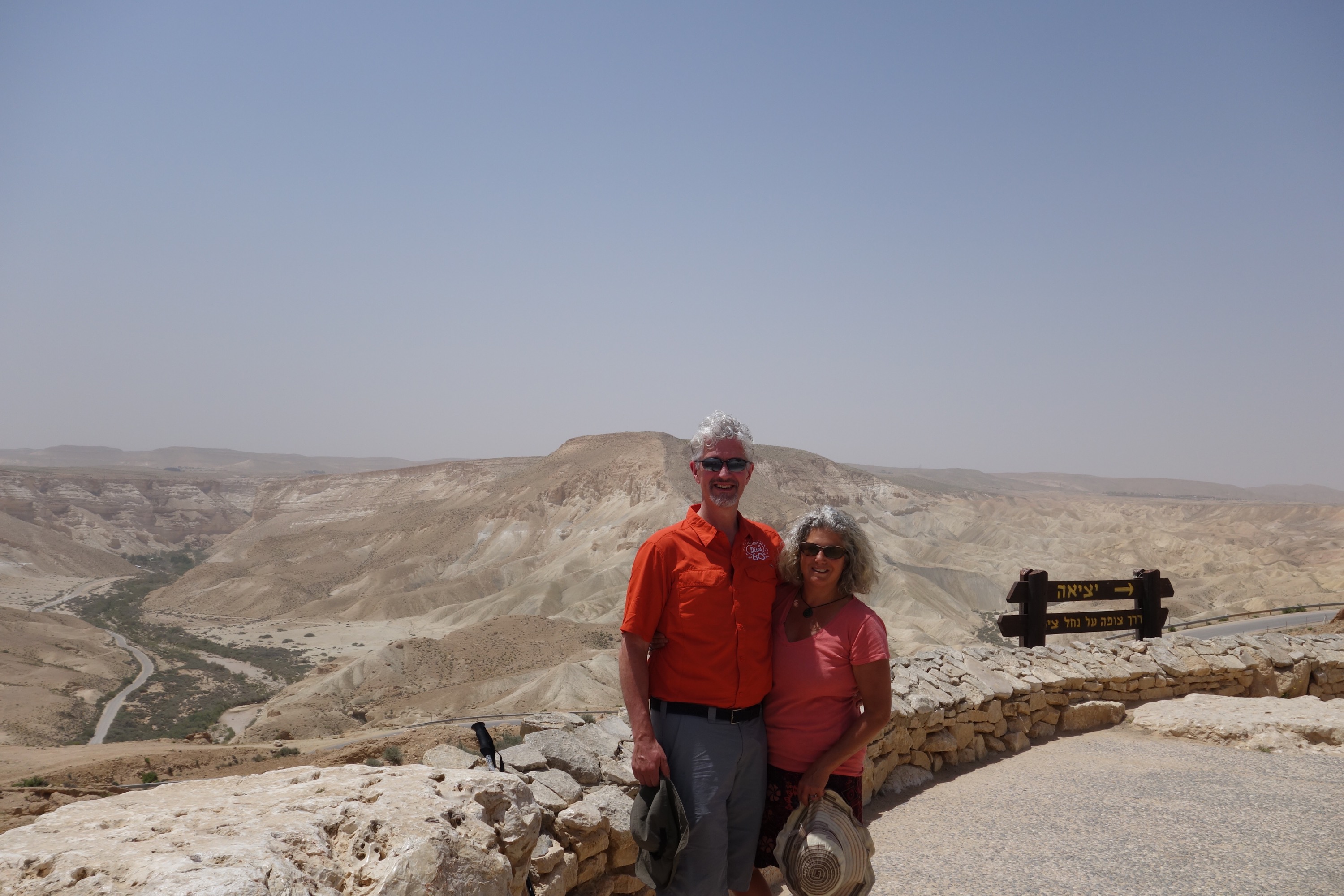 This morning (our 35th Engagement Anniversary!), we left Jersulam to head south into the Negev Desert.  We stopped briefly at the national monument and museum honoring Israel’s first Prime Minister:  David Ben Gurian.
