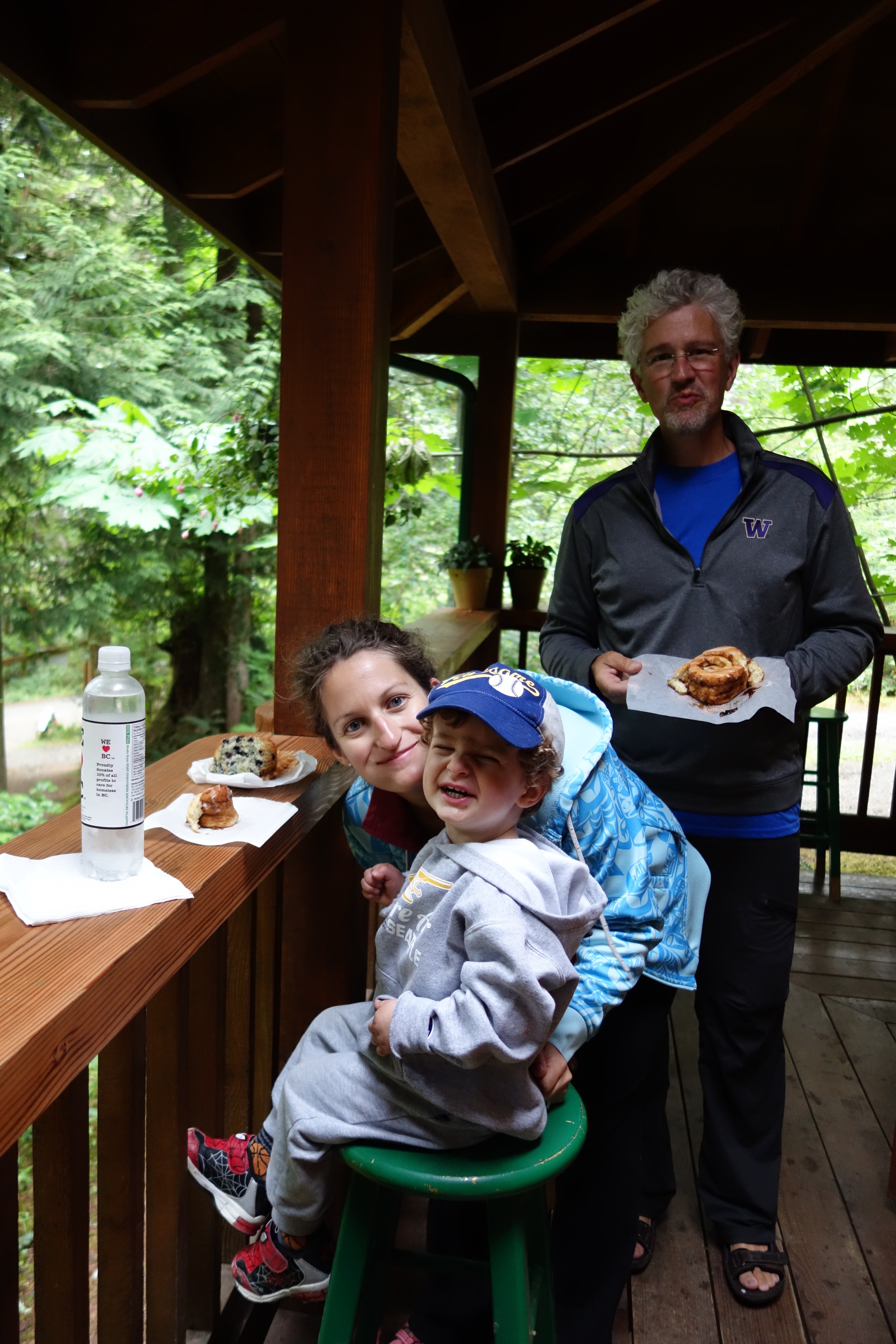 and then took a walk to our favorite little bakery in the woods. James enjoyed a yummy, mini cinnamon roll and ran around the grounds and the deck.