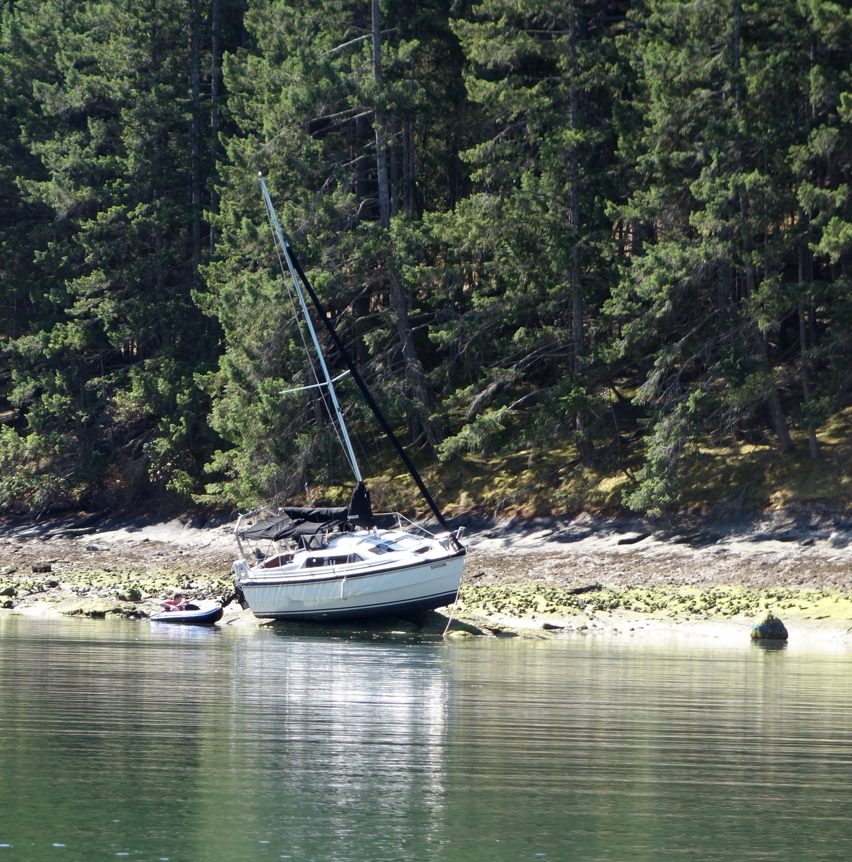 The next morning it was clear that our concerns were valid. Our clearance to the bottom was under 3 feet. But a fellow boater had totally miscalculated and was high and dry.