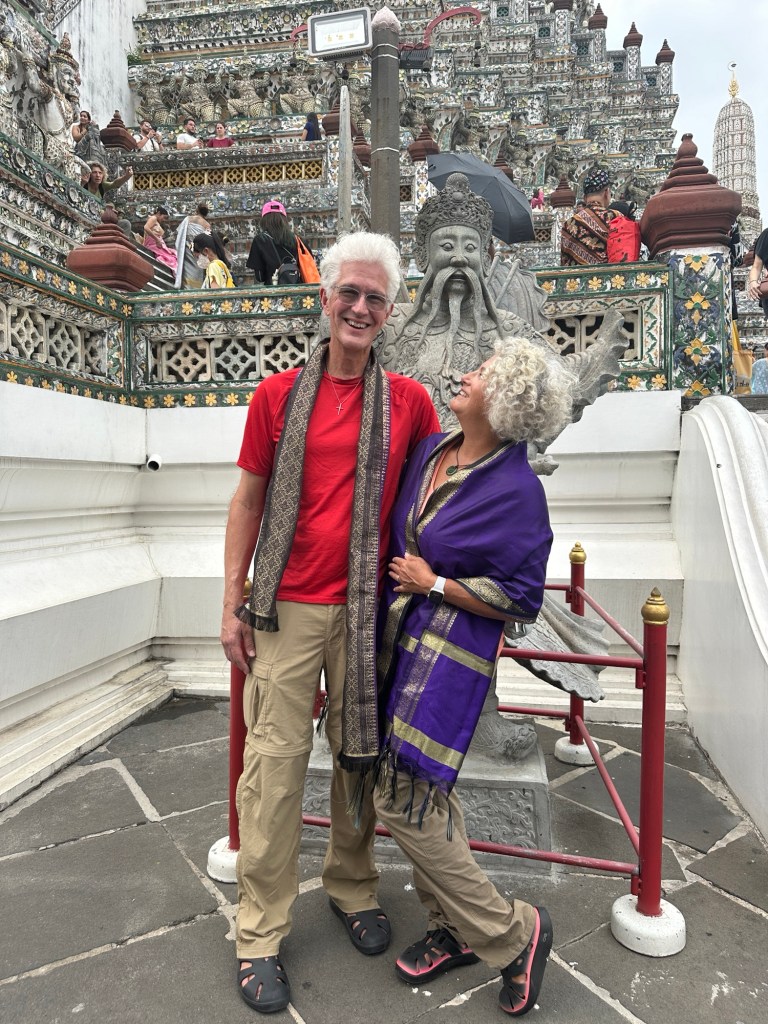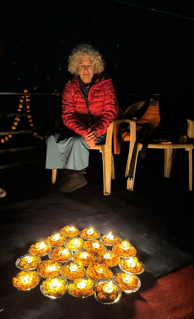 Back at our hotel, there were three consecutive weddings: all loud, colorful and beautiful. We showered and collapsed into bed. Jim was really affected by the relentless air pollution of northern India, and especially the smoke from the multiple cremations. I put in my earplugs to dim the wedding party sounds and fell soundly asleep until 4:45 AM when I was going to go back to the river to experience with some of our group the daily ceremony of “waking up” Mother Gonga for another day of religious experiences.
