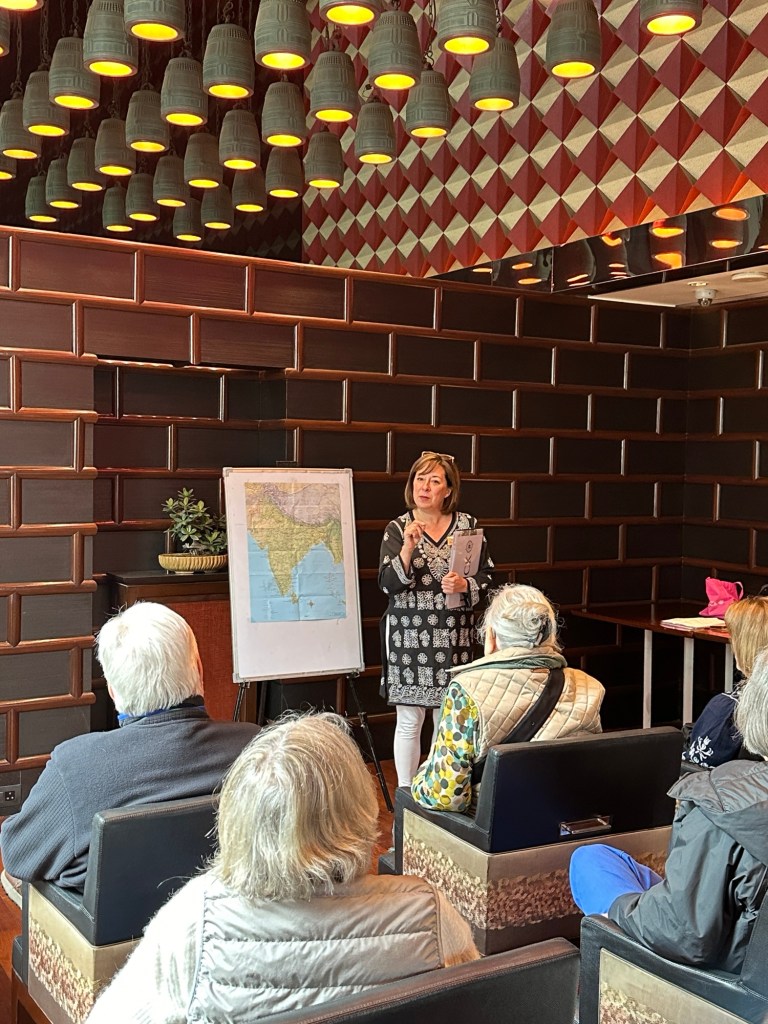 Aside: we just dropped off our airport guide, luggage and logistics leader in Delhi, Amrinder. We stopped in traffic near the Leela, he literally jumped out of our bus near a traffic circle in the crazy Delhi traffic, hailed a tuk-tuk to go back to the hotel, where he’s going to grab his car and drive 40 Kilometers home after a very full day. As Captain Kirk said about Spock in Star Trek IV (the humpback whale movie), Tina said, “it’s his way.” And, she said, “it’s India. He does it every trip.”