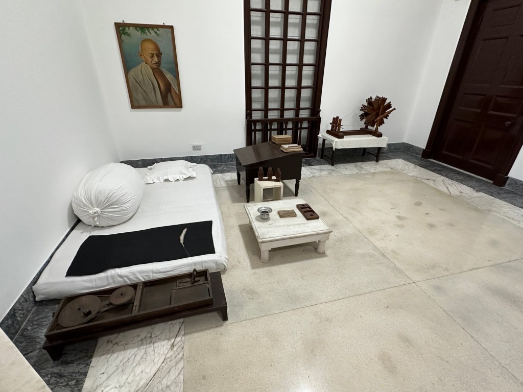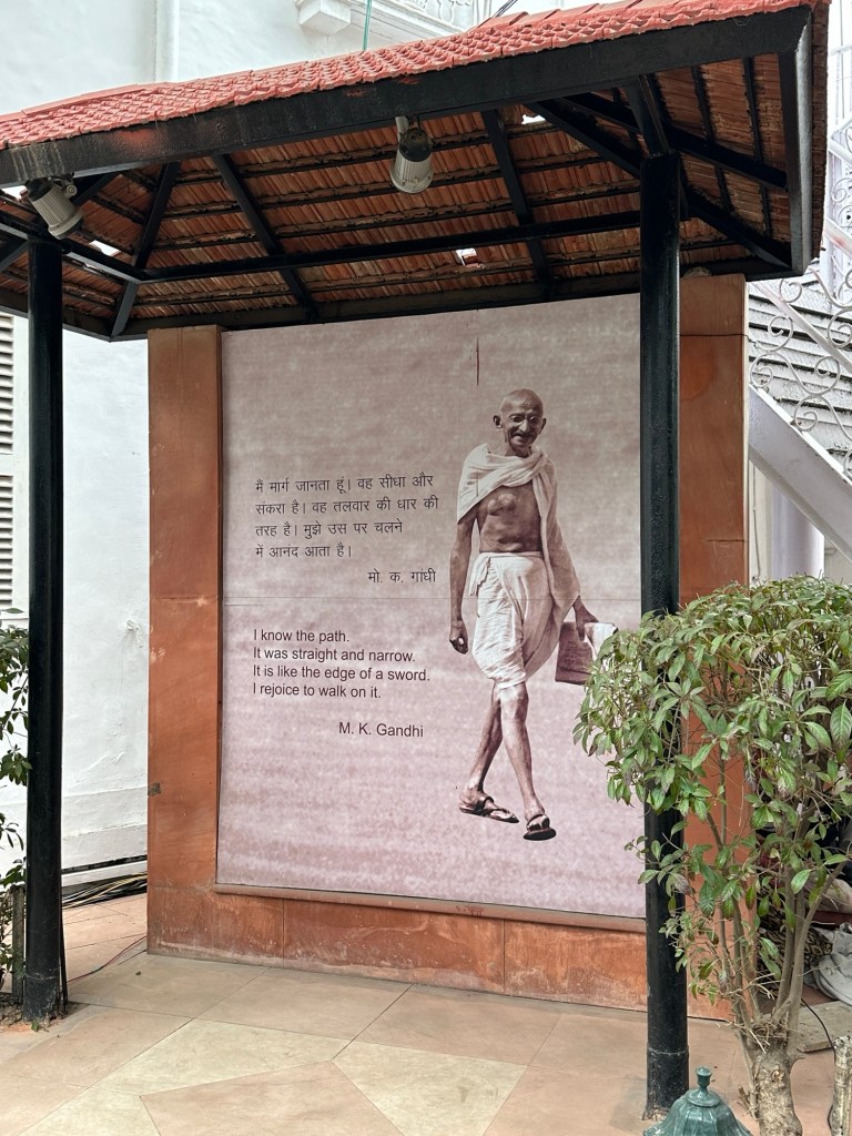 On our first tour day, we met our first guide, Samidha, who led us through the bus tour of the New Delhi and our first stop at Gandhi’s Smriti (where Gandhi spent the last four months of his life before he was martyred by a gunman during a public prayer meeting on January 30, 1948). The academy award winning film “Ghandi” was partly filmed at this site. If you haven’t watched it recently, you should. There is a reason he was called “Mahatma” Gandhi. As Albert Einstein wrote: “Generations to come will scarcely believe that such a one as this ever in flesh and blood walked upon the earth.”