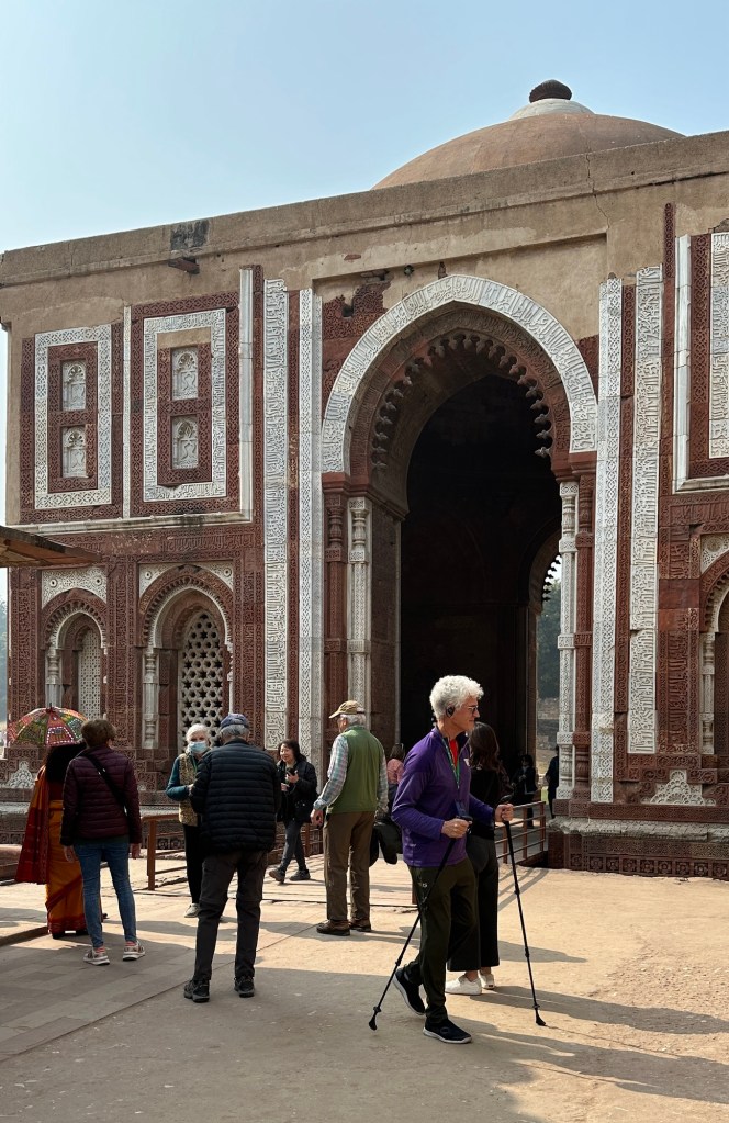 The huge Qutb Minar (tower) that was erected on top of a Hindu Temple to commemorate the first Muslim conquest of Northern India and Delhi over 800 years ago, in the year 1191. It’s an extensive archaeological site. I must say our Hindu guide, Samidha, did her best, but as a Hindu, her heart was saddened by the 700 year years of Muslim rule that followed, before the British Empire replaced the Moghul Empire in 1857.