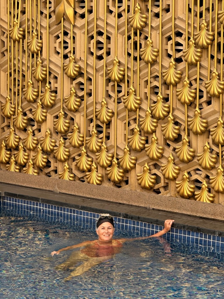 That night we headed back to the Leela, Jim and I swam in the beautiful rooftop pool, and then enjoyed a lovely group dinner together.