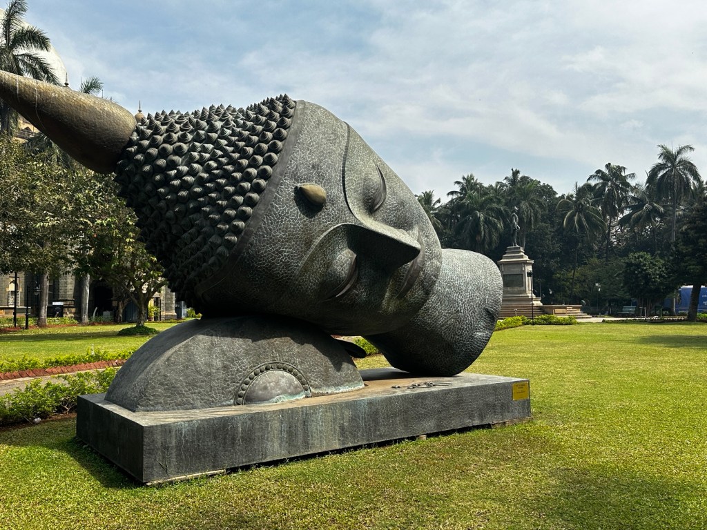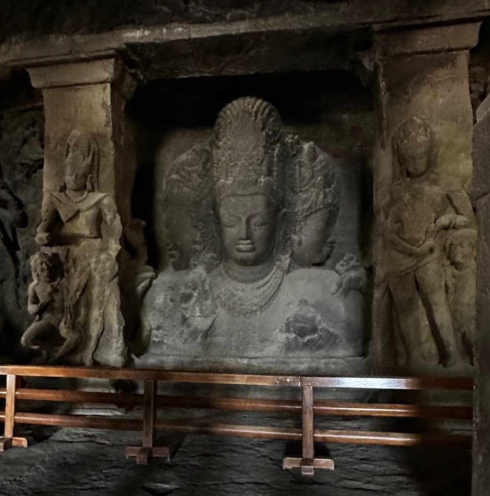 Docking at the stone pier at tiny Elephanta Island is definitely like going back in time. After reaching the top of the pier, we rode a funky little toyish train to the shore, the then climbed the 120 steps up to the caves, which are filled with very impressive Hindu carvings of the Hindu Divine Trinity: the Creator, the Preserver and the Destroyer of Evil. Our guide beautifully narrated the stories behind the sculptures as we circled from the east entrance to the final statue of Shiva in a meditative pose. He sits at the end of his everlasting life cycle in the classic meditative pose with only two arms. The Hindu Divine Story reflects the 4 stages of humanity: Youth (where we gain knowledge), Marriage, Retirement, and then the end of life, giving up materialism, meditating on life and hopefully reaching Nirvana. The caves were carved in the 5th century AD. The caves are surprisingly dramatic, beautiful and insightful.