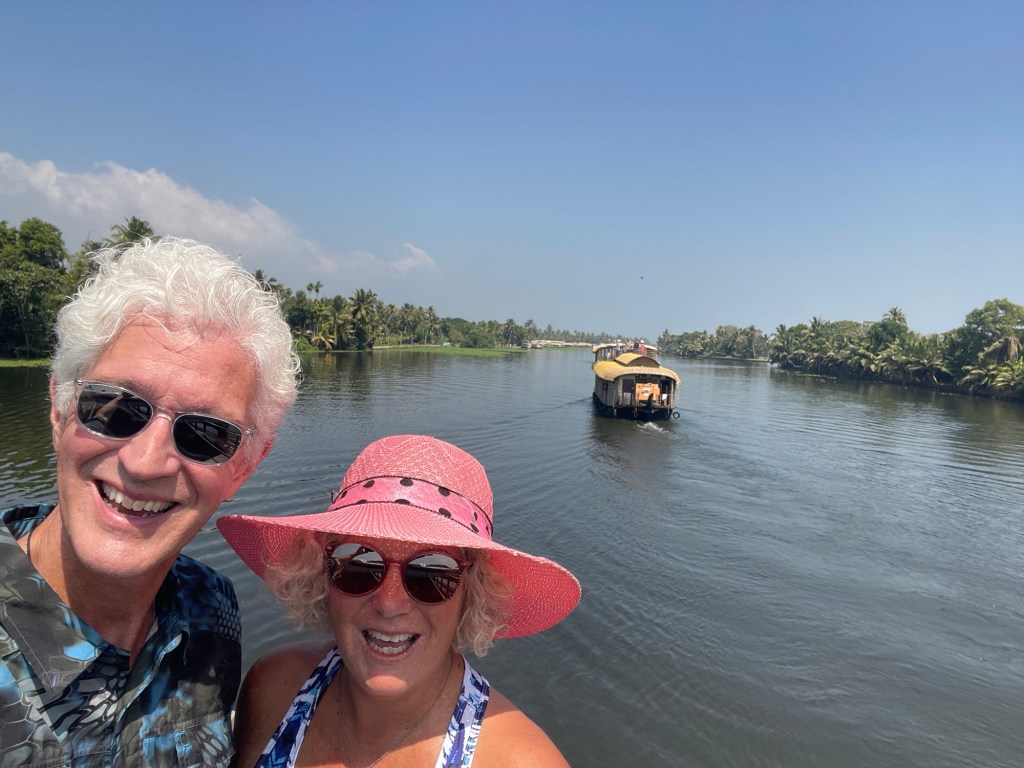 We left Udaipur for our early flight to Kochi. Flying within India is different. Security is extremely uneven and doesn’t always make sense. You cannot check ANY electronics or eletrically powered equipment; no cords, shavers, hair blowers, curling irons, ear pods, computers, iPads, travel speakers, anything that can possibly be an electronic item in any way. (Strangely, large water bottles are fine). So all of your electrical or electronic devices, wires and chargers must be in your carry on bags and pulled out for detailed screening when you go through security. Otherwise they will pull your checked bag and throw away any electronics/electrical item (if you are lucky), or just put your checked bag in the holding area for further inspection if you are not lucky. Sometimes they will contact Tina who can sometimes go into the bowels of the airport to rescue the bag. Tina spent a lot of time pre-airport trip reminding us of the rules. Jim and I passed the test every time.