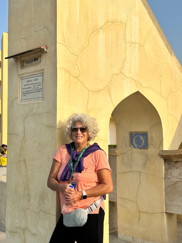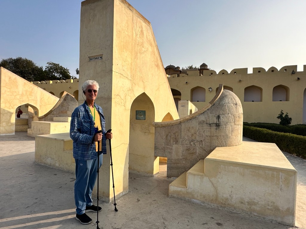 We began our tour of Jaipur by driving into its downtown for a quick tour of the area in the evening late, navigating the traffic and getting a first peak at the bus old town. From there it was off to visit a remarkable Astronomical Observatory built 300 years ago by its Maharaja (King). With a population of only 3 million, Jaipur is a tenth the population of Delhi, much cleaner, and with less poverty. The buildings are beautiful and the city interesting.