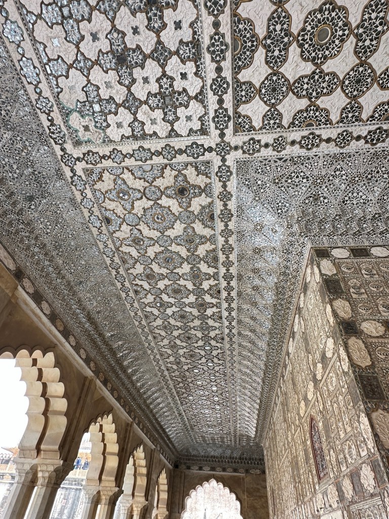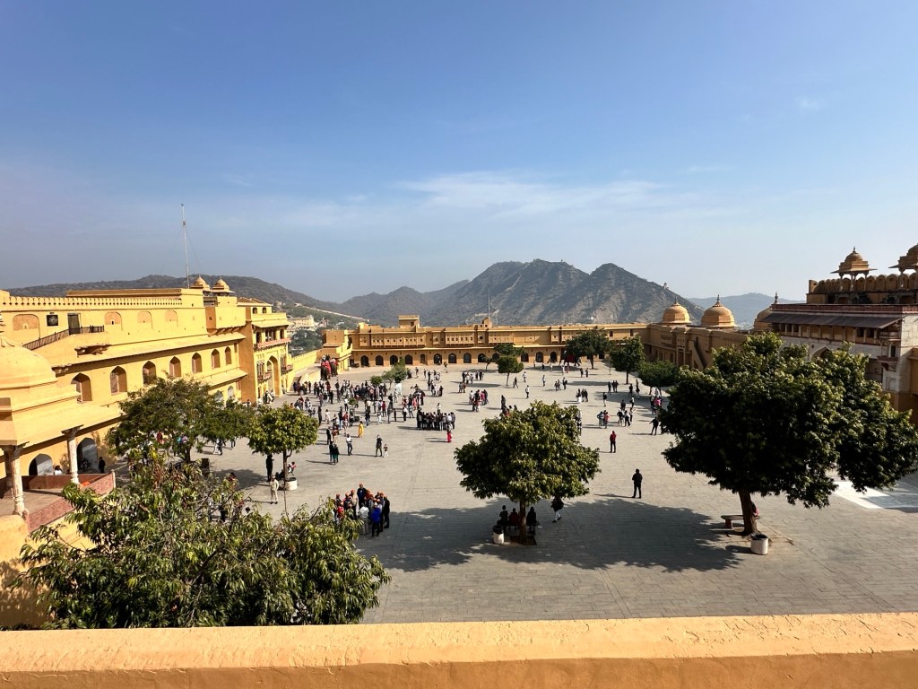 Then it was back across the traffic and on to our magic bus for our next stop, the Amber Palace, a much larger and older palace on the outskirts of Jaipur that was protected by a hilltop fortress and a long stone wall that was miles long.