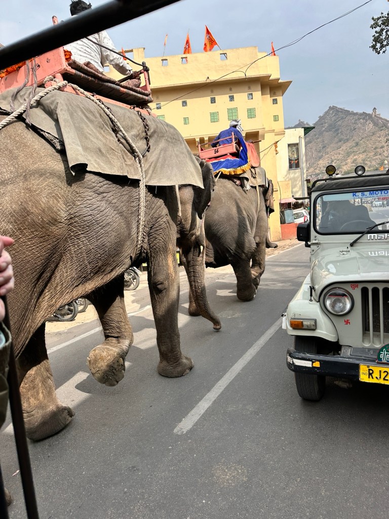 In Jaipur we took them from the Palace, past camels, horses, elephants, cars, vespas, and lots of motorcycles to get from the crowded part of town to the bus to get to our dinner in an other part of the city.