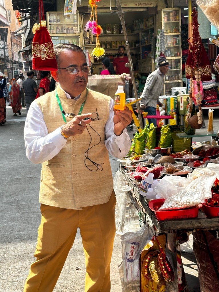 The next day we toured the the old town again in the morning light, crossed a crazy, very busy intersection. The key is to “walk like a cow”. Don’t run, don’t stop. Somehow the traffic weaves around you. Amazingly, in all the the chaotic Indian traffic we never saw an accident. It just works. But crossing the intersection wasn’t the craziest thing. A couple of us, including me, experience the snake charmer and his pet cobra. I’m assuming it was defanged, but strangely we didn’t ask.