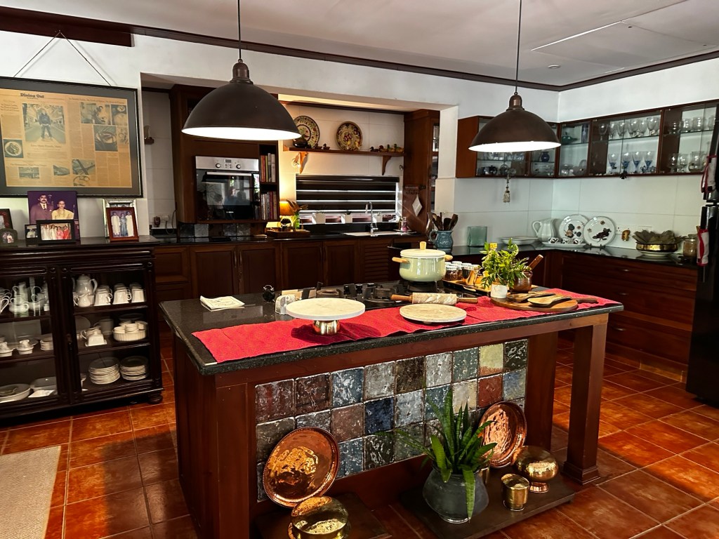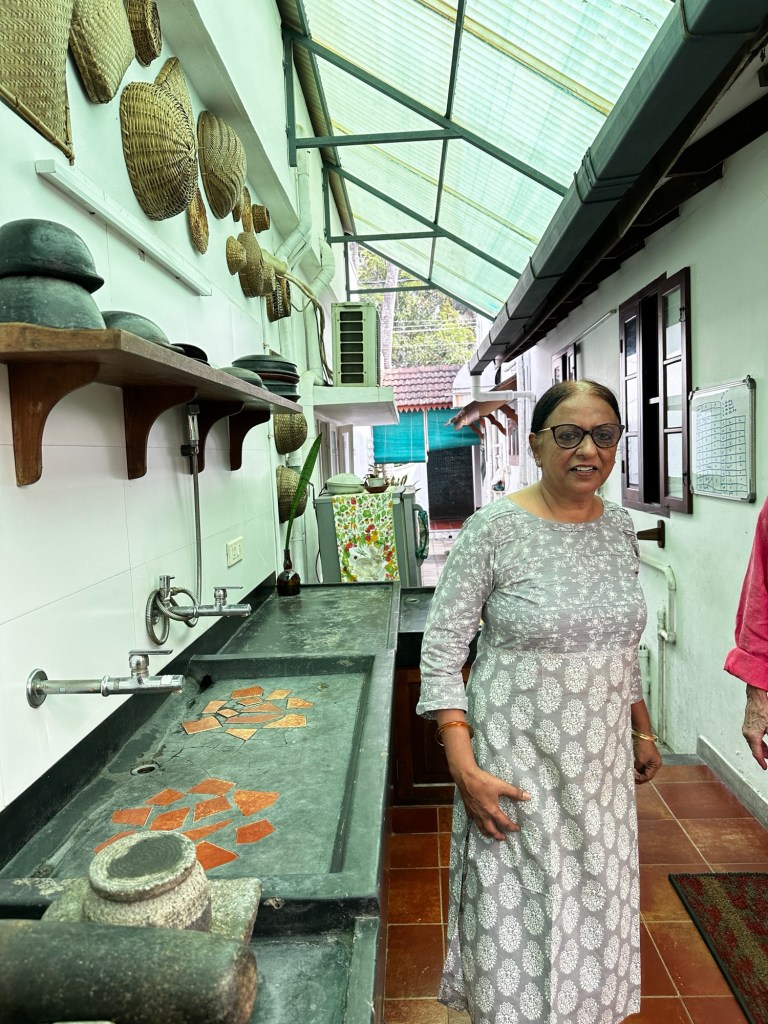 The excellent book “Covenant of Water” begins to come alive for us in Kochi and Kerala. We took a boat from our hotel to the other side of the bay where our bus was waiting for us to take us to Nimmy & Paul’s House. Nimmy is the Indian equivalent of Paula Deen or Julia Childs. She and her husband live in a house set up with a TV kitchen and we were treated to a lesson in Southern Indian cooking and a scrumptious lunch. Everything was delicious, but her Chicken Biryami was the best I’ve ever eaten. I can’t wait to cook it at home using her recipe. She was “discovered” 50 years ago by a NY Times travel writer and now does presentations for Tauck and a few other tour groups.