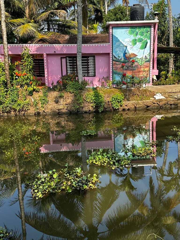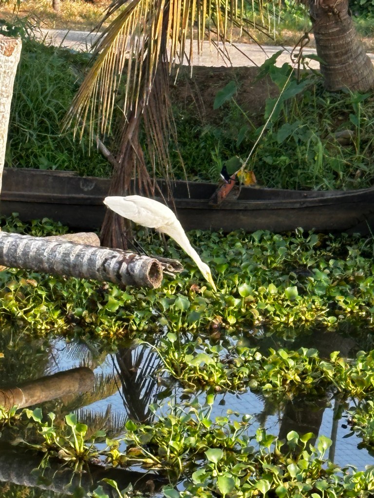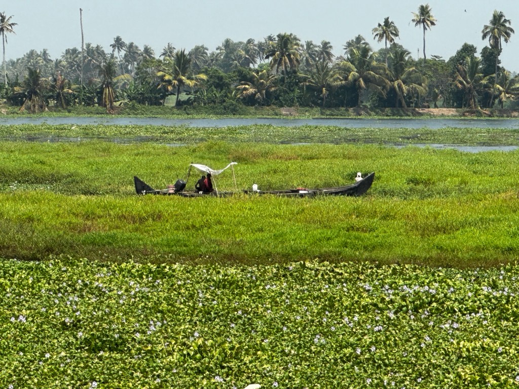We left Kochi the next morning to head to the Kerala Backwaters. The Kerala Backwaters are a chain of brackish lagoons, canals and lakes south east of Kochi. We began with a 2 hour bus drive and then boarded a large kettuvallam house boat to journey to the Kumarakom Lake Resort. The house boat journey felt like something out of the old Bogart movie “The African Queen”. We slowly navigated the river to a giant lake, enjoyed a yummy lunch onboard, and then docked at the resort. Along the way we saw rice paddies, hawks that looked like bald eagles and lot of other birds of all kinds. These waters are home to many species. Many of the house boats are quite fancy to accommodate tourists, complete with nice bathrooms and bedrooms.