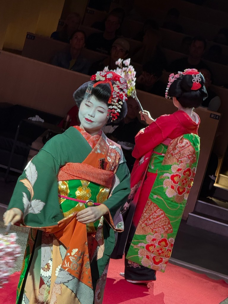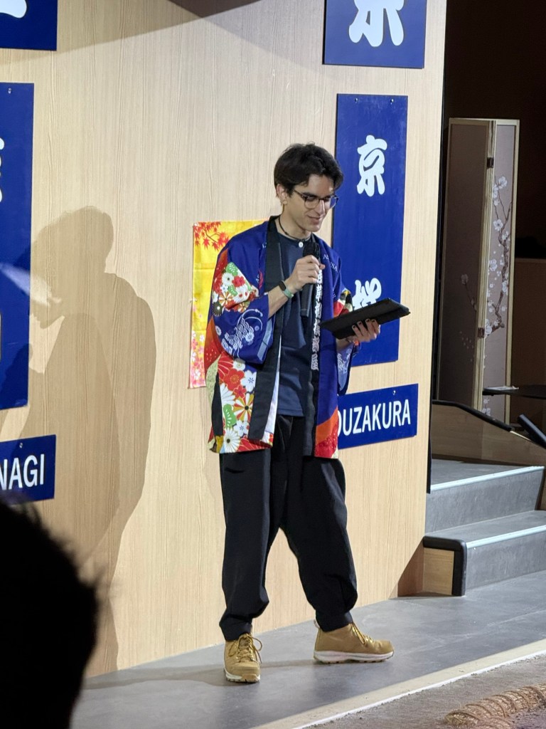 There were also two geisha dancers. And then we all played a kind of “rock, paper scissors game” but with Samurai, tiger, & old woman. Everyone in the audience played the game and James won!