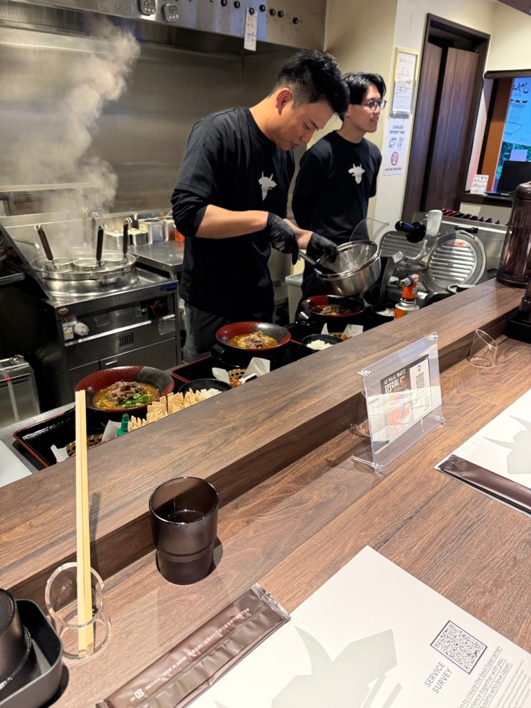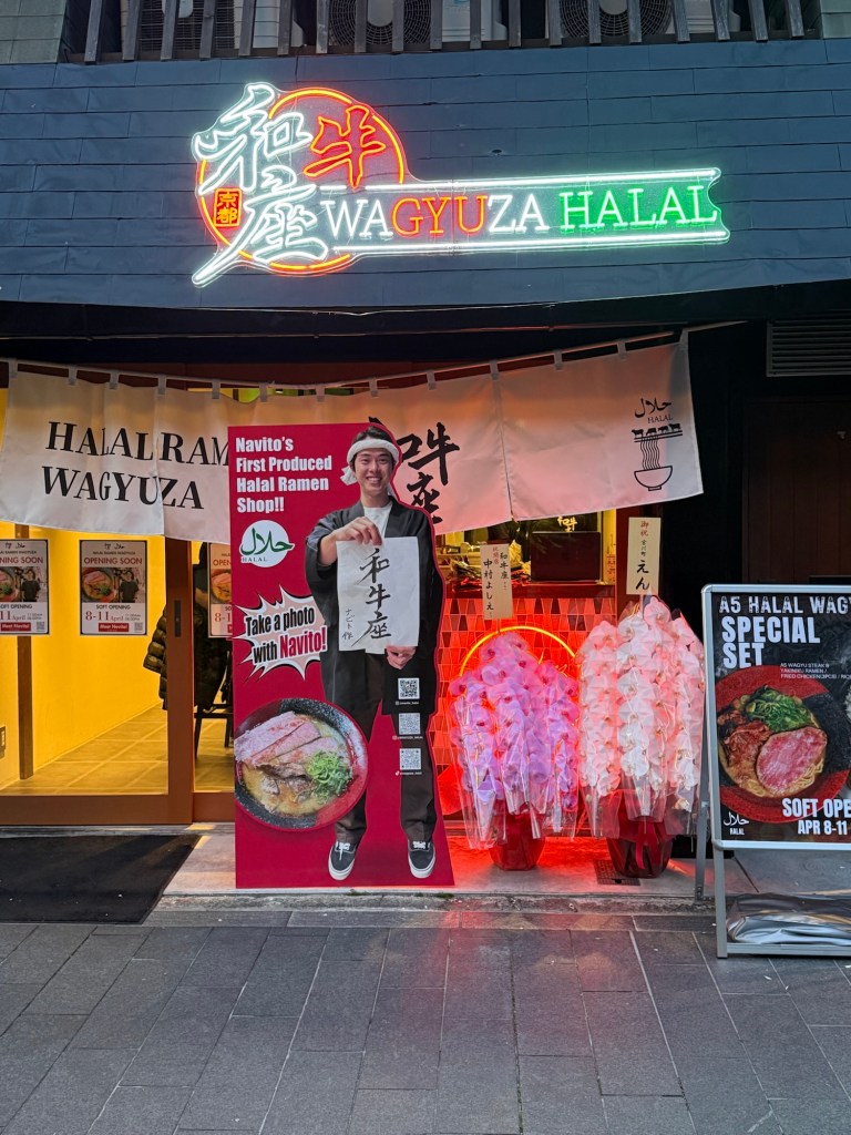 We ended our day with another walk to dinner and stumbled onto a restaurant that just opened that day. One of the employees sold us on giving it a try on their “soft opening”. It was a Halal Wagyu Raman Restaurant. We weren’t craving another Raman meal, but our hearts were with these small business owners and they were so pleased we came in. We were the second group they served that day. The broth, wagyu meat, fried chicken and noodles were yummy and if you scanned the QR code to leave a review you also got a free matcha. James especially like the Japanese fried chicken.