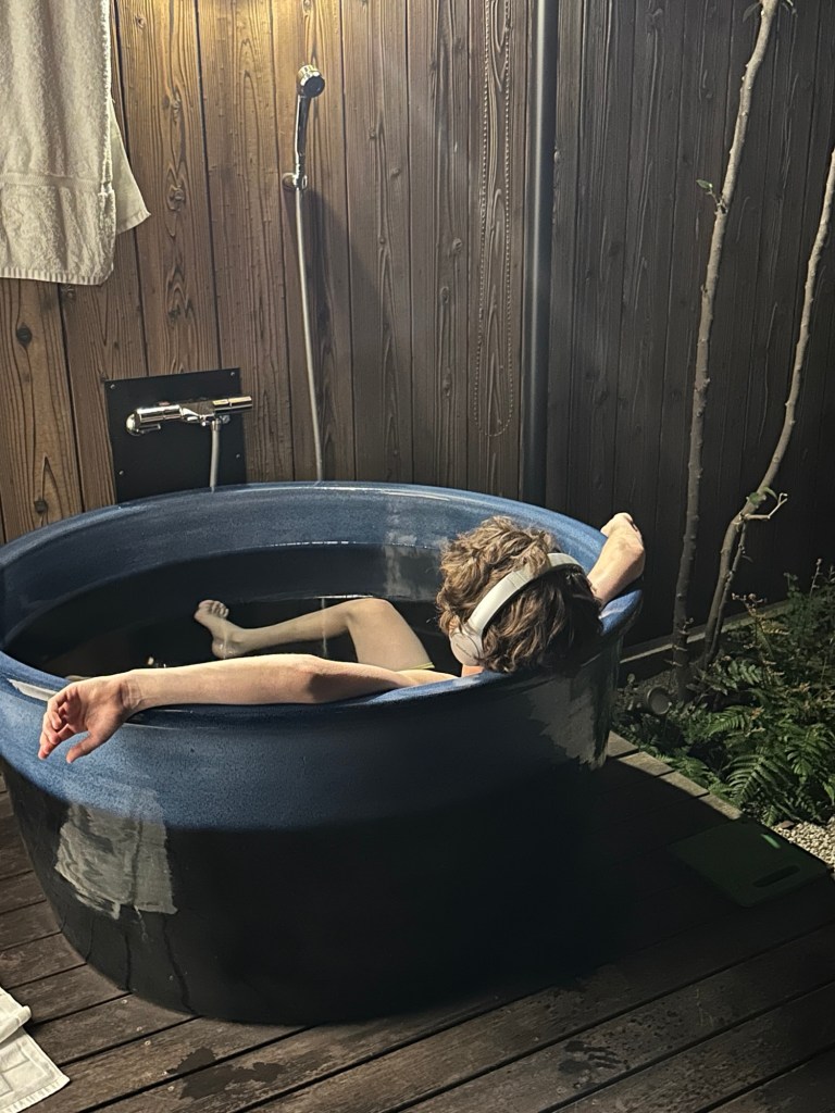 E-biking was another great activity. Those bikes are powerful, so it took some getting used to. I got the hang of it though, and despite the uncomfortable seat, I had a good time. It was fun to get on a bike again. The Golden Temple was really cool too. I enjoyed the outdoor tub (which is a one person hot tub, and even then it’s a little cramped). To end the day we watched “You Only Live Twice” with Sean Connery as James Bond. It is set in Japan, with some Sumo wrestling at the beginning, so it was fun to watch while in Japan.