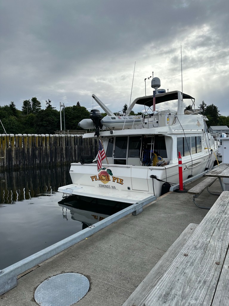 Heading back to the boat we noticed the Peach Pie, owned by our friends Sydney and Christopher Gorrell, who we met recently in Hawaii. They just happened to stop there for the night on a cruise from Edmonds to Anacortes. It’s a small world!