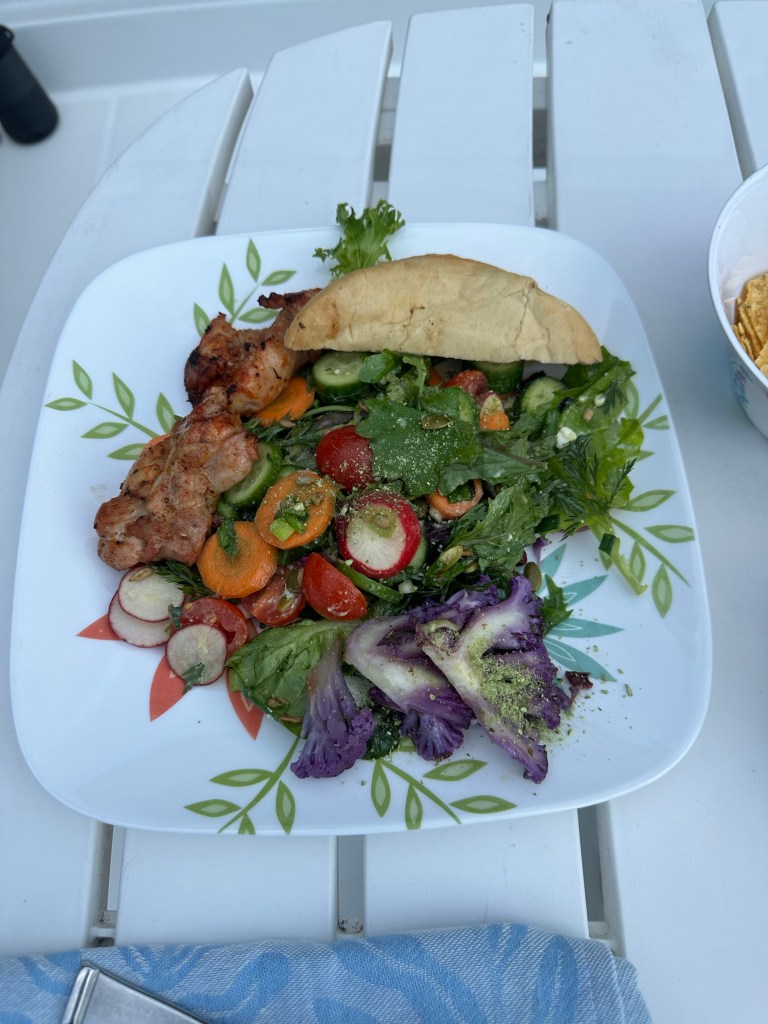 After a quick shower at the Beach Gardens Marina we walked up to the newly reopened restaurant. Over the years, especially after COVID, it wasn’t always open. It’s lovely again now and the food and drinks were yummy.