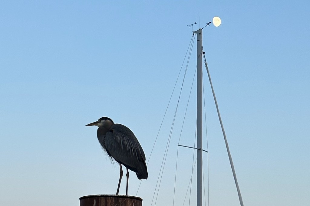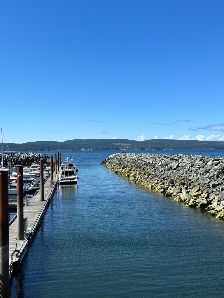 Next challenge, navigating into Comox at an extreme low tide. We are completely unfamiliar with the area and of course we didn’t have the highly recommended chart suggested in the Waggoner guide. Luckily, it wasn’t very windy so navigating the drying shoal was pretty easy. But, there wasn’t room at the dock unless we “rafted” onto another boat. We have never rafted in 14 years of boating. The idea of tying up to another boat and walking over it to get to the dock is extremely unappealing. But we did it with the help of the lovely young women, Teagan, at the marina. We were stressed, but she was chill and very skilled. She couldn’t believe we had never rafted before. Oh well. By the time all this was over, exhaustion set in and I was “good for nothing”, as the saying goes. We could have dropped the kayaks and enjoyed the area and the low tide, but I just couldn’t rally.