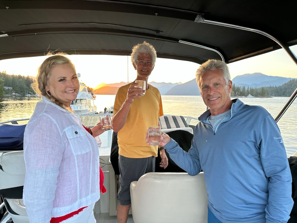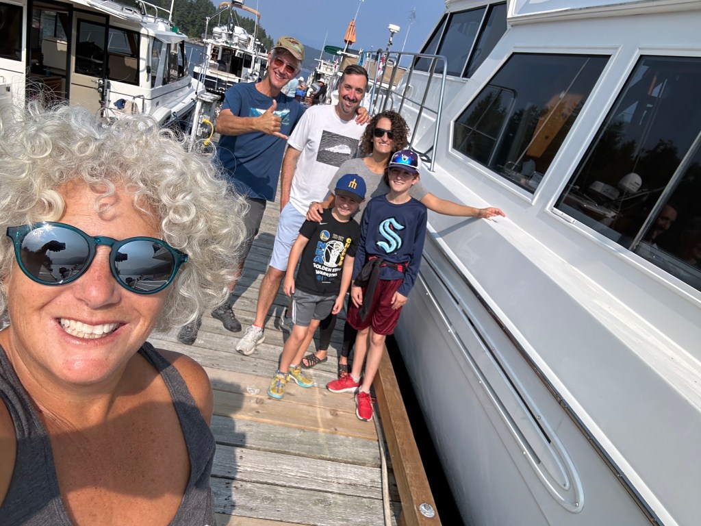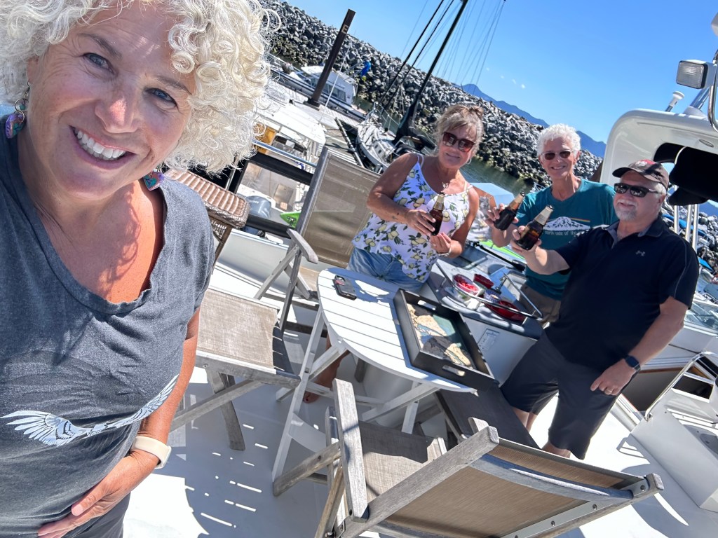 Anyway, we checked the weather and it predicted a strong Northwest wind Friday and Saturday. This update would make it difficult to make our next destination: Dent Island on July 3rd. Although we planned another night in PLI, we decided to muster after breakfast and clean up our floaty toys to head out a day early. And I’m sure glad we did. It’s sunny, but the wind has arrived. We are now safely docked at the Garden Bay Marina in Powell River. And we have the extra blessing of connecting with other Canadian friends we met in Hawaii who are going to fly down on their private plane from Revelstoke to connect. As Paul Simon wrote: “We live in an age of miracles and wonders.”