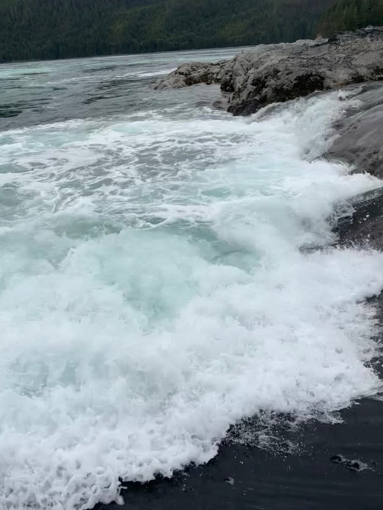 The stars were beautiful last night in the expansive sky of the inlet and we even saw the bioluminescence! This morning we go up early to head back out through the Skookumchuck and the Captain timed it perfectly at slack. We have definitely earned our Sk Rapids Merit Badge.
