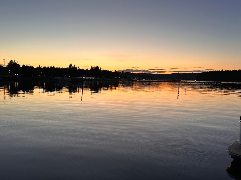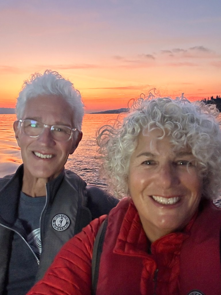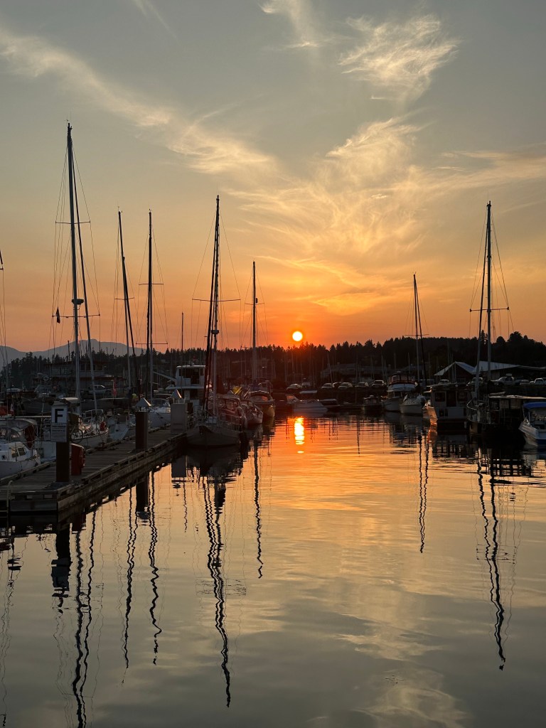 The Captain’s intuition was correct (this time). It didn’t take long on our journey from Salt Spring to Montague to escape the winds and waves. And we got to enjoy another fabulous sunset in calm waters!