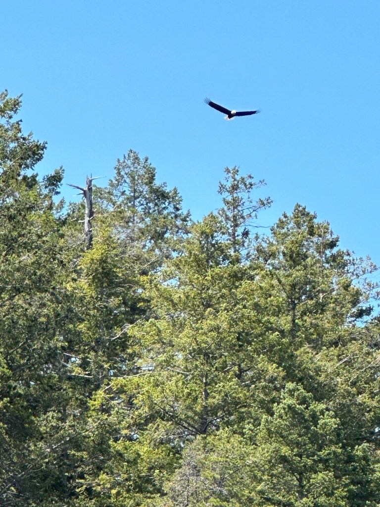 Again applying our sustainable bliss principle we stayed a second night. There were so many eagles around we had a blast kayaking and listening to them communicate. A couple of them flew through the forest like Star Wars flying speeder bikes.