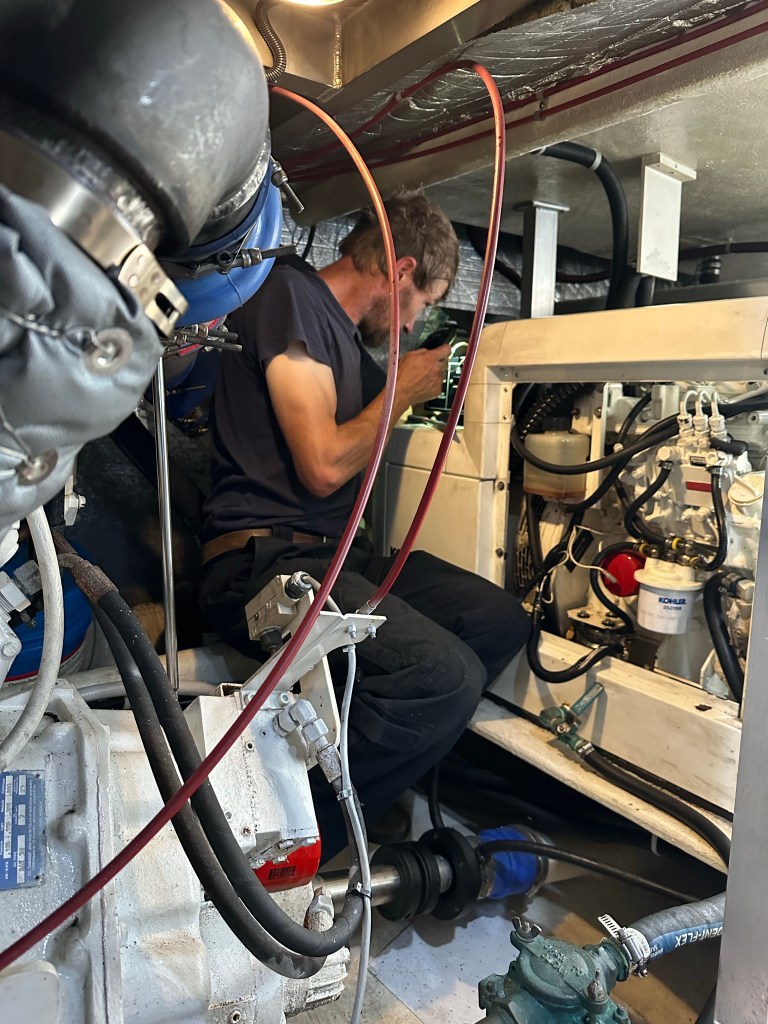 Mike and I worked in the engine room together. We tried to “bleed the lines” by jump starting the fuel pump. Apparently the fuel filter turns on when the circuit board detects oil pressure. It is like what comes first, “the chicken or the egg” thing. But you can also jump start a fuel pump by connecting it directly to a 12 volt battery. Mike asked if we had electrical wire, ✔️ hay wire & duct tape ✔️, and we had a portable battery for jump starting (The Captain bought it just in case the tender battery died). We were glad to have it because it came in handy earlier in the trip when the generator’s dedicated battery died and it came in handy again to jump start the fuel pump on the generator itself. So in awe, I watched Mike create a jumper system for the little fuel pump “McGiver” style. I love the MacGyver TV show and so does Mike. In fact, his business is named “Mikegyver Mechanic”. We attached all the wires, added power and . . . Nothing. The fuel pump was clearly dead. As Miracle Max says in Princess Bride: “There’s a big difference between mostly dead and completely dead. Mostly dead is slightly alive. With completely dead, well, there is [nothing] you can do . . .” I quoted it and Mike, my brother from another mother, knew it was from Princess Bride. So we both knew we needed to get a new fuel pump and get it installed before the generator would work again.
