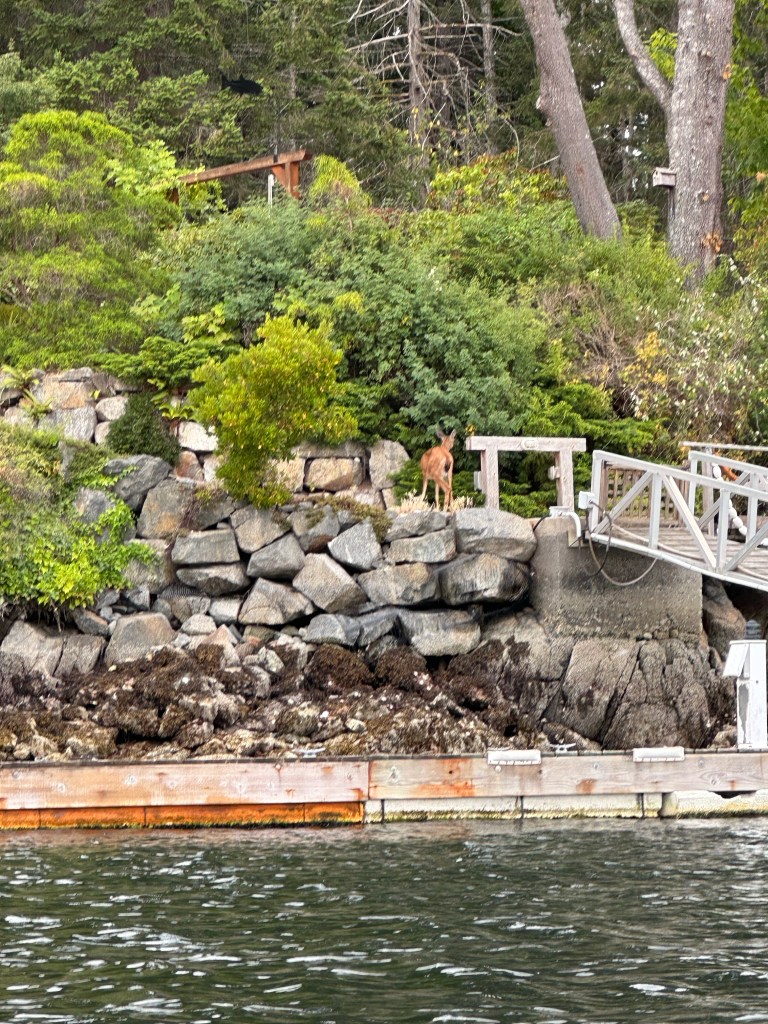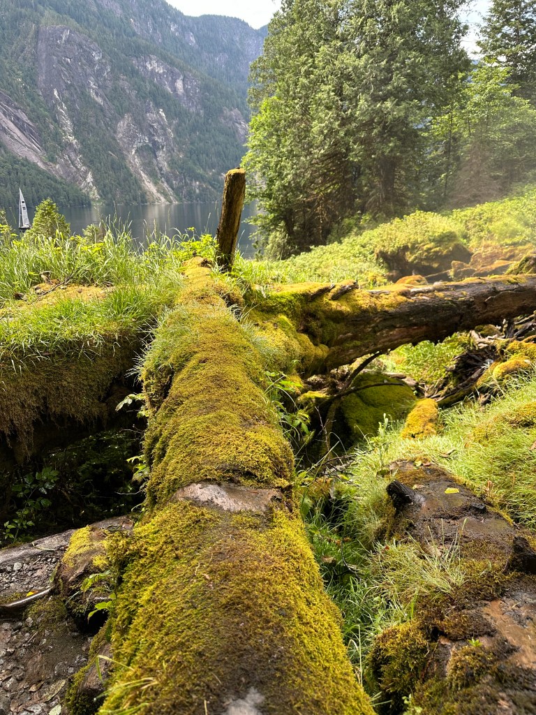 We docked at April Point, on the other side of Discovery Passage from Campbell River. The old resort there is in complete disrepair and closed, but the marina still exists and is a quiet little spot with beautiful views. The docks aren’t in great shape, but with power and water are good enough. We had multiple zoom meetings the next day and needed to make sure our trusty starlink works best when the boat is either underway or stationery at a dock (and not spinning around an anchor).