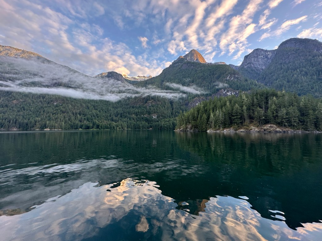 Beautiful morning reflection in Jervis Inlet after leaving PLI