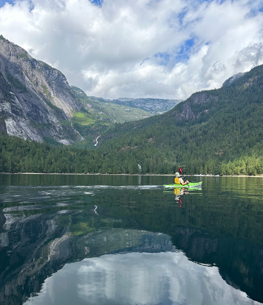 Our hope was to get into PLI before the July-August “busy” season and we succeeded. The waterfalls are abundantly flowing. Snow fields and glaciers cover the high mountains and during the occasional sunny days, we’ve enjoyed the spectacular scenery, kayaked, floated, gone paddle boarding, done yoga and read.