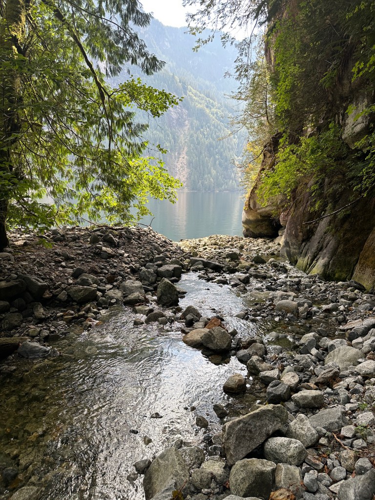 View from our anchorage near the head of Narrows Inlet.Paddle boarding and exploring the inlet from our anchorage.Tzoonie NarrowsHummingbird CloudOur 2nd night anchorage in Narrows Inlet is perfect, with big views north and south and a little stream nearby