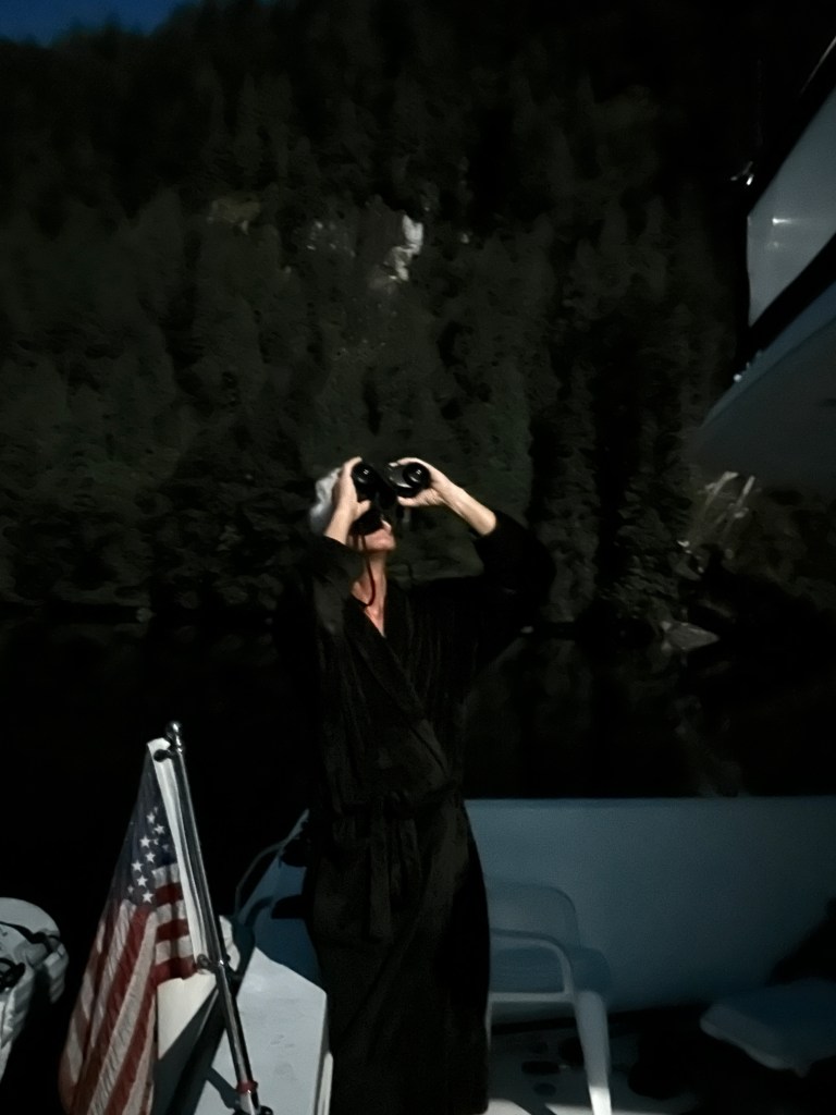 It’s not the Captain’s favorite job, but we scoped out a location to take a photo of part of the Milky Way. He rightfully worries that one of us may end up in the cold 51 degree water, in the dark. But, we took the tender to two locations and found a good landing for a late night photo shoot that he felt, at least somewhat comfortable with trying around midnight.