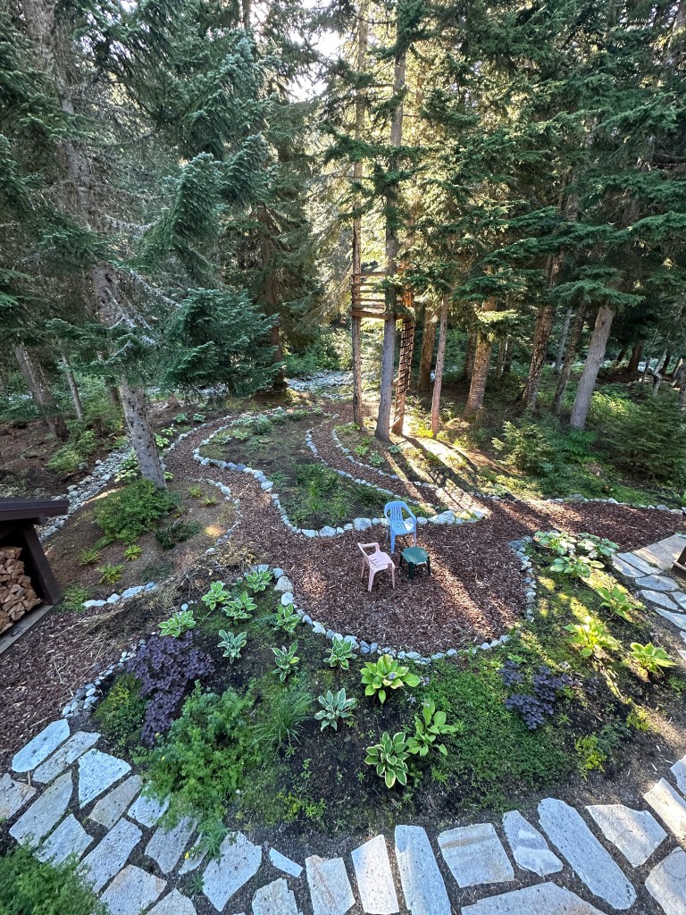 The gloriously sunny weather continues, the water is a warm 71 degrees and I quickly deployed the blow up pizza and paddle board so we could float and cool off. In late June the days are long. And the best way to cool off in the afternoon heat is in the water. Floating on the water, in the sun, and listening to the waterfalls is truly heaven and is in perfect harmony with our goal of Sustainable Bliss.