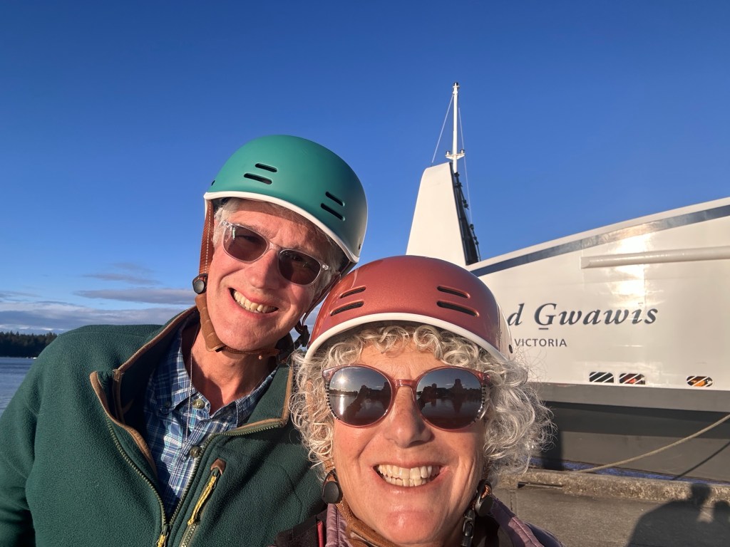 We now have folding electric bikes on board to make getting around easier when we are at a dock. Going up the steep hill above the Nanaimo Marina to eat at our favorite Greek Restaurant is now a breeze. We love them. Our second night in Nanaimo we used our e-bikes to go to an excellent Italian Restaurant near the Greek Restaurant. I’m using a “Lumen” device to gauge my daily metabolism and help me lose some weight by burning carbs more efficiently. It’s working really well for me. I feel better and stronger and have learned that on big exercise days I need to eat more carbs. It helps me exercise harder without aches and pains. Our second day in Nanaimo was a high carb day for me. So I was ready for some pasta and bread. We ordered their garlic cheese bread, which was more like a garlicky, cheesy, pizza with crust that was as thin and light as a croissant. In short, it was heavenly. The rest of the meal was yummy too. This restaurant is now another “must visit” when in Nanaimo.