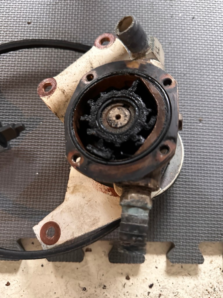 Next we removed and disassembled the water pump to see if the impeller was damaged – ding, ding, ding!