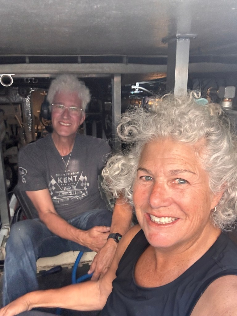 It’s a little cumbersome to turn the generator on and off now because we have to climb down into the engine room and manually turn on and off the fuel pump and the main switch at the same time. But it’s purring again now whenever we ask it to recharge the batteries or power the watermaker. Hopefully, we are done with our stoic challenges for awhile, but you can be sure that if we are faced with a new challenge that we will overcome it, sometimes by ourselves and sometimes with a little help from our friends Mike, Irvin and Dan!