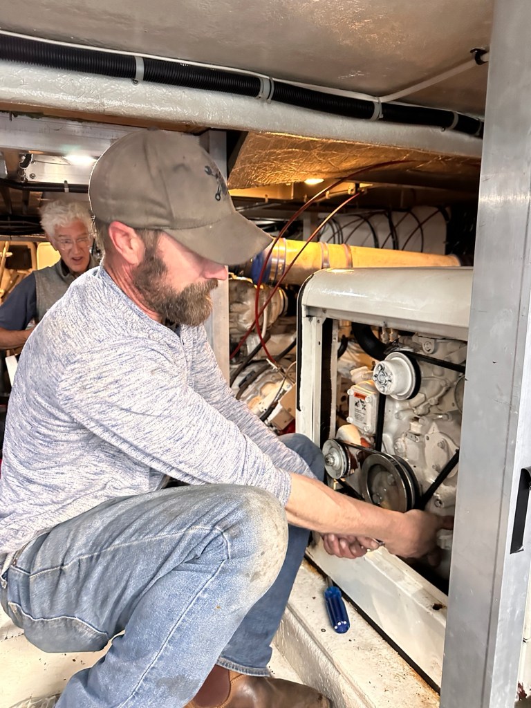 So despite the many stoic challenges we faced, we were also being blessed by another boating miracle. We thought there was no chance we could find anyone that quickly. So we waited for Mike the mechanic to finish his 3 other Sunday projects and come to our dock.