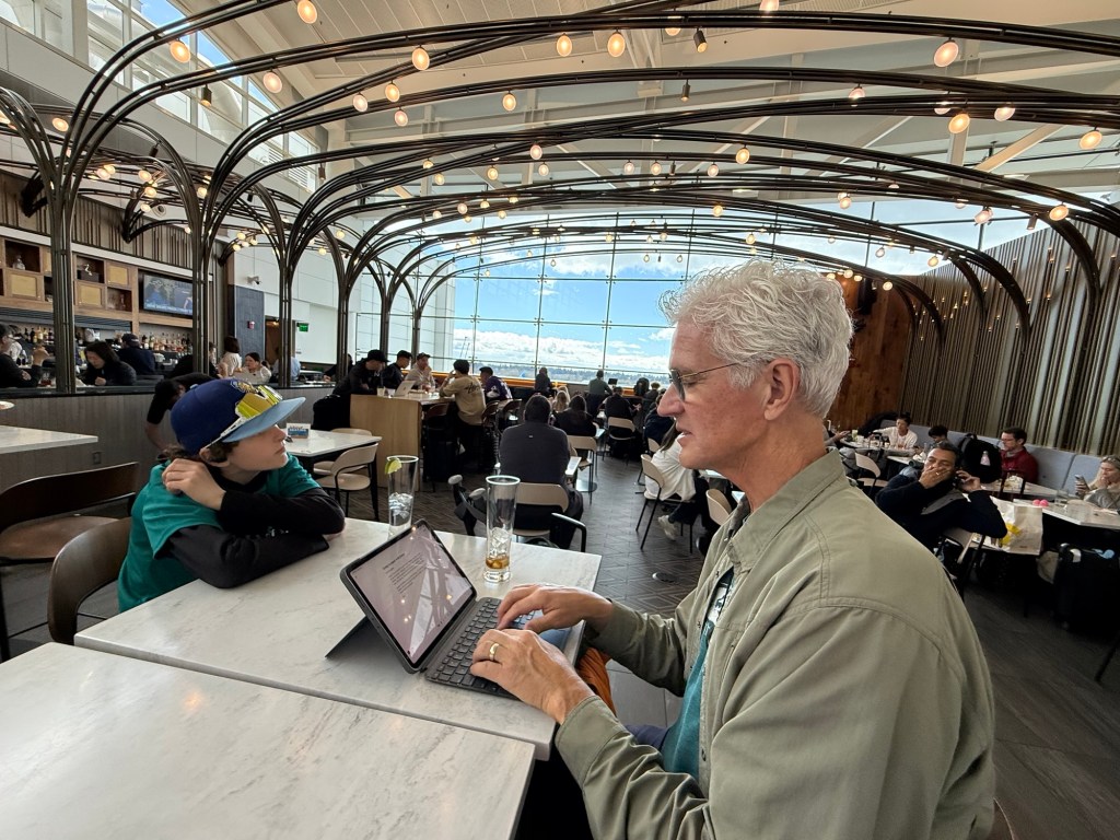 James: It’s really cool to go to the lounge. I’ve never been here before. Security was easy enough and our flight is on time. I am very excited to see Japan.