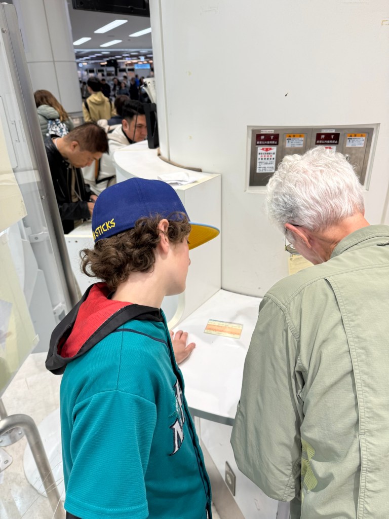 After deplaning and traversing an extremely long path to customs we arrived at the cue. For those traveling to Japan here’s a pro tip: get your customs code online. The experience will be much faster. It wasn’t bad for us. James and I had trouble with our photos and finger prints, but Jim’s went through easily. The process takes one computer stop, two forms and two manned-stations. All and all it took an hour.