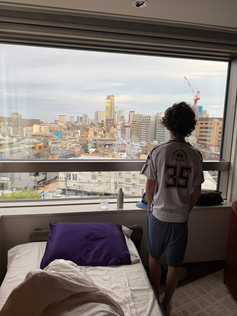 James: Japan, in summary, is a lot different than back home. The sidewalks are giant, there are ads everywhere, and apparently McDonald’s has two floors. The farthest outside the US I’d ever been was Canada, so this is a big step up. Grandma and Baba are used to it, but I still find all the differences really interesting. It is a very clean place. There are no trash cans on the sidewalks, and there is almost no trash on the ground. They are very strict when it comes to littering. It was a very nice temperature here before the rain, which was nice for our walk. I was able to get a good workout/swim in, and we are going to have linner at 4:00 (We didn’t have lunch and it’s too early for dinner). Tomorrow we will go to an Easter service and do more exploring.