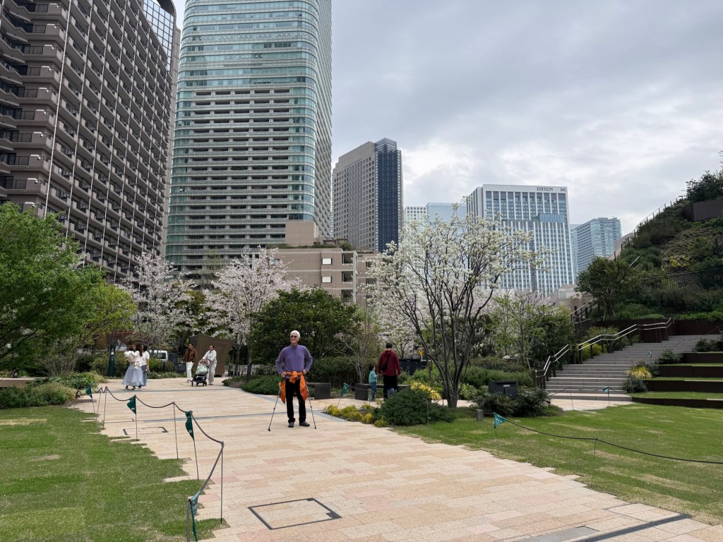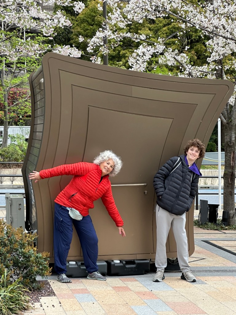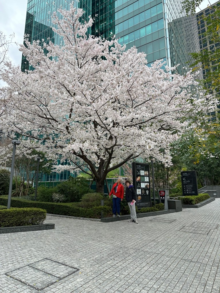 Jim: I love Japan, especially when the cherry blossoms are putting on a show. We walked a couple of miles together, exploring the area closest to our hotel, where there are a lot of tall office buildings, separated by small but beautiful gardens. Before we walked to dinner, the wind picked up and the cherry blossoms were falling like snow!