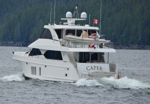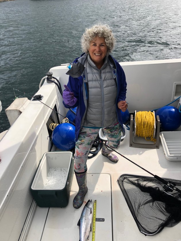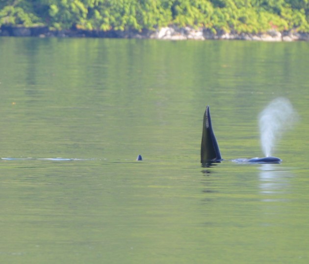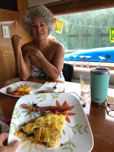 I write this about an hour south of Port Hardy. We hit the weather jackpot with calm seas, no wind and clearing skies. It’s sunny now although there are several thunder clouds in the distant mountains.