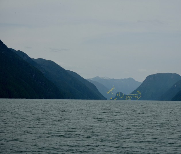 Although Queen Charlotte Sound looks like crossing the Georgia Strait, it isn’t. As soon as we were out in the open the big ocean swells from the northwest appeared. It wasn’t choppy or windy but the swells were intense and they lasted for all 4 hours. Both of us got a little queazy. This is unusual for The Captain. Ginger beer helped and going below the top deck was something to avoid whenever possible: it was just too “rolely-polely” and not in the happy “Pokey Little Puppies” way.